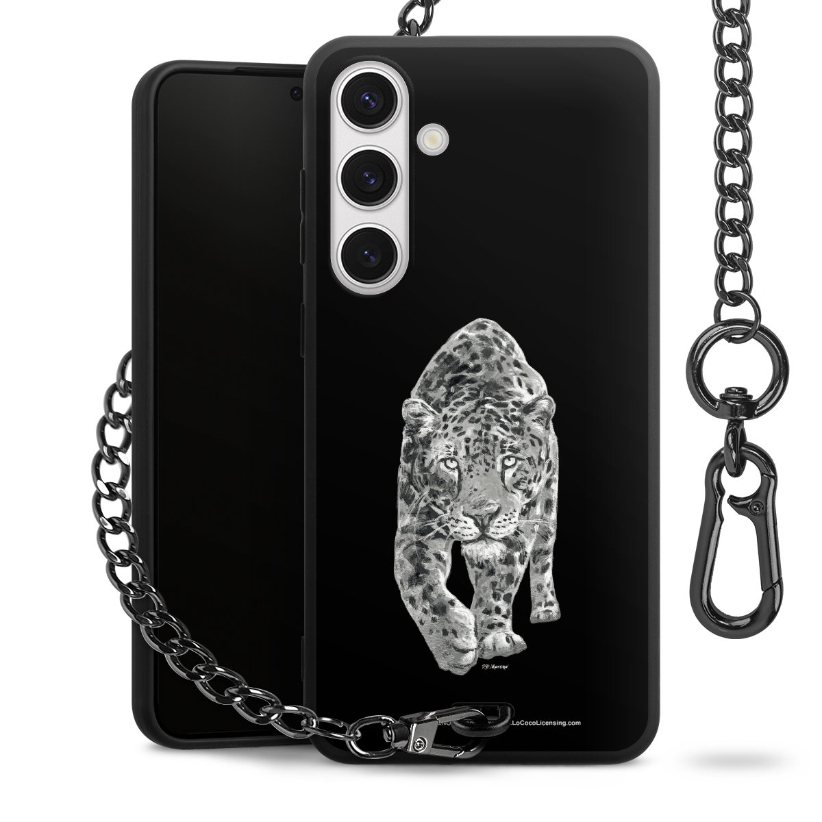 Die mattschwarze Silikon-Handyhülle besteht aus robustem TPU (thermoplastisches Polyurethan). Sie ist flexibel und schützt Dein Smartphone vor Stößen und Kratzern. Die Kette sowie der Karabinerhaken sind aus Metall in Gunmetal-Optik gefertigt. Für dieses Produkt kommen ausschließlich TÜV-geprüfte Materialien zum Einsatz.