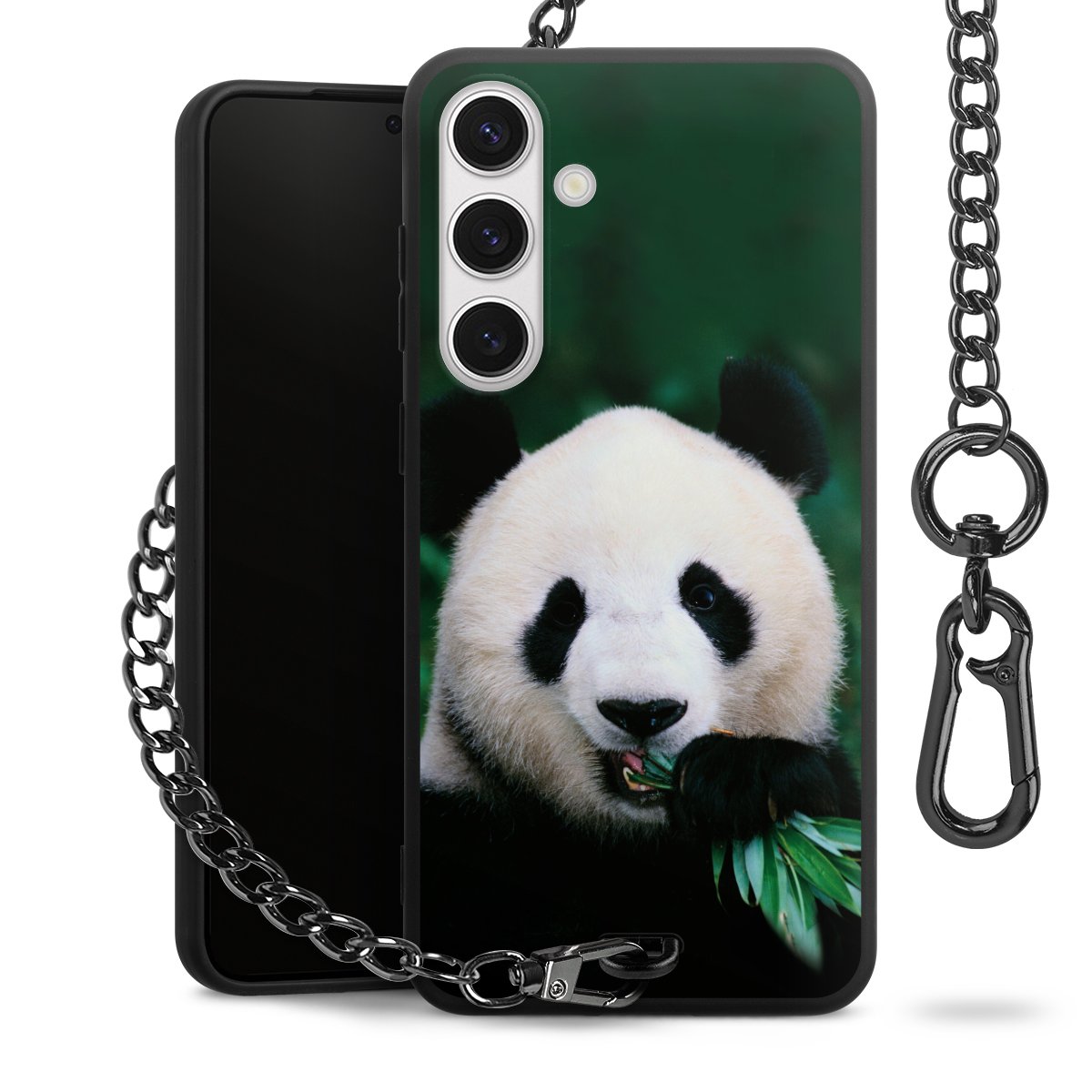• Mattschwarze Handyhülle mit Metallkette