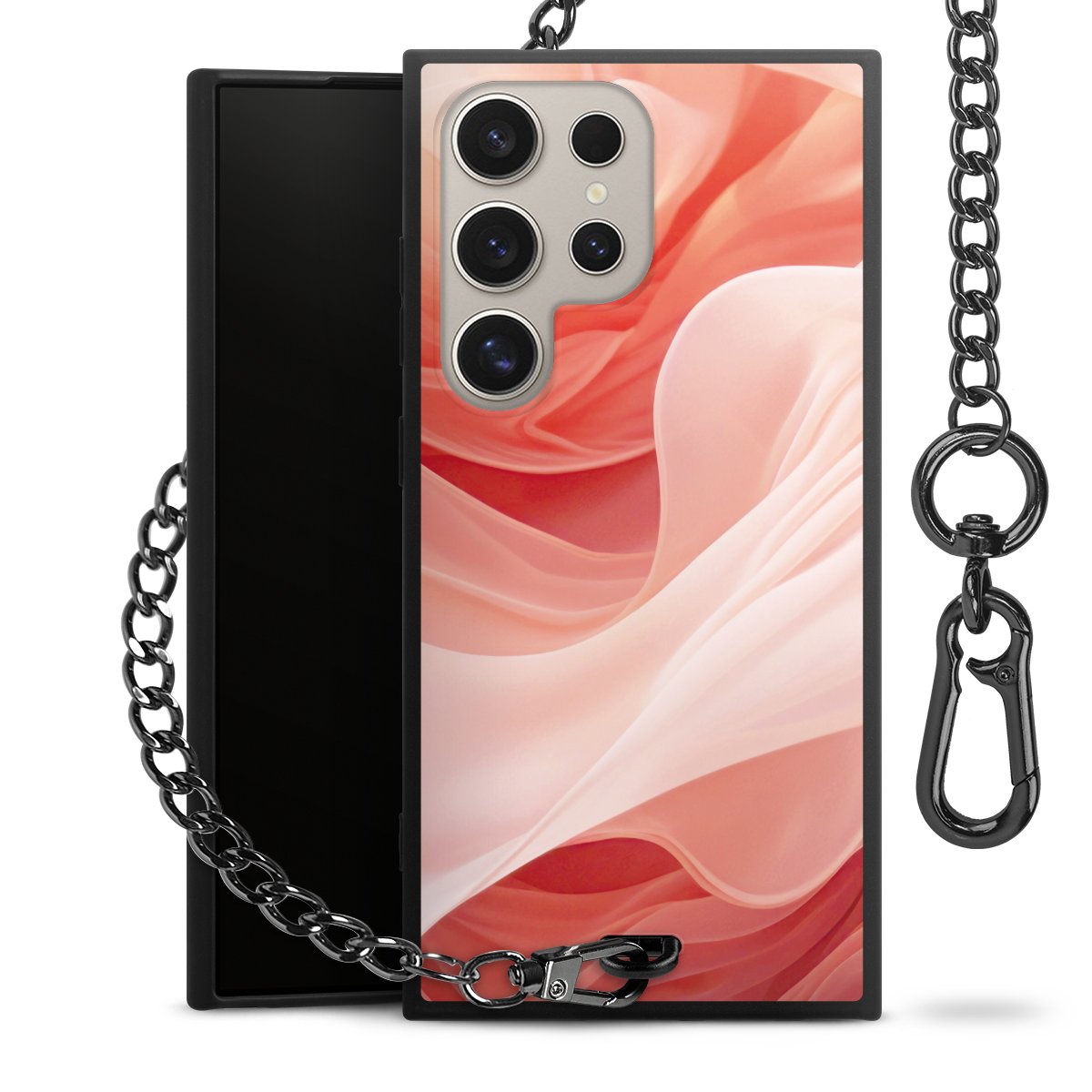 • Mattschwarze Handyhülle mit Metallkette