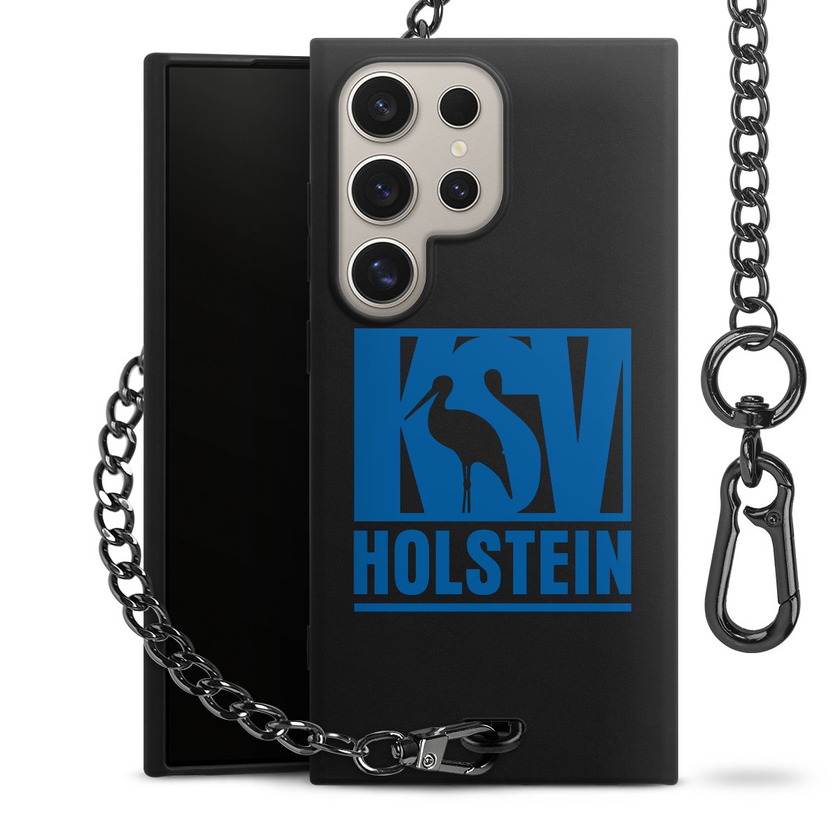 • Mattschwarze Handyhülle mit Metallkette