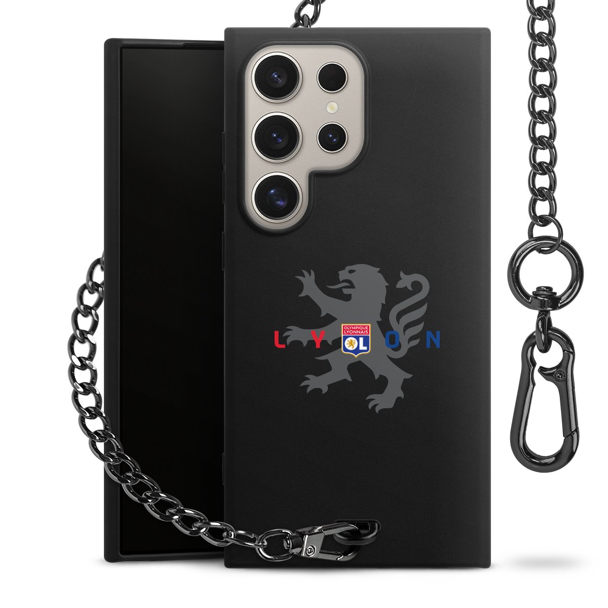 • Mattschwarze Handyhülle mit Metallkette
