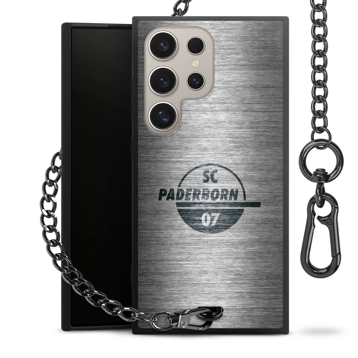 • Mattschwarze Handyhülle mit Metallkette