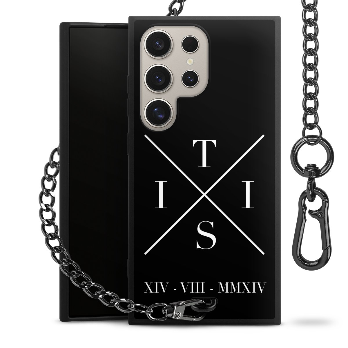 • Mattschwarze Handyhülle mit Metallkette