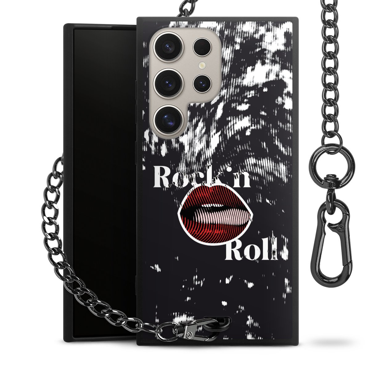 - Mattschwarze Handyhülle mit Metallkette