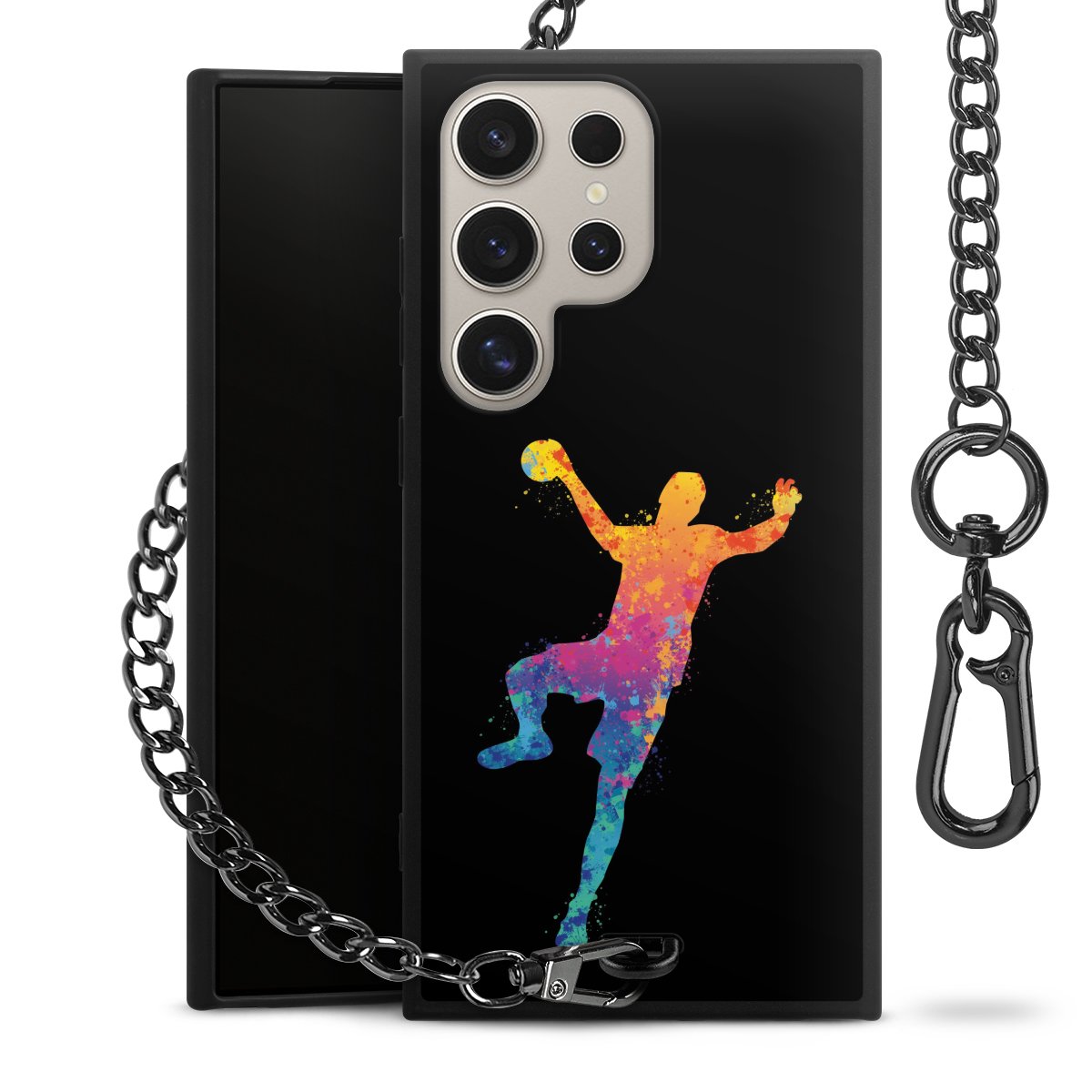 - Mattschwarze Handyhülle mit Metallkette