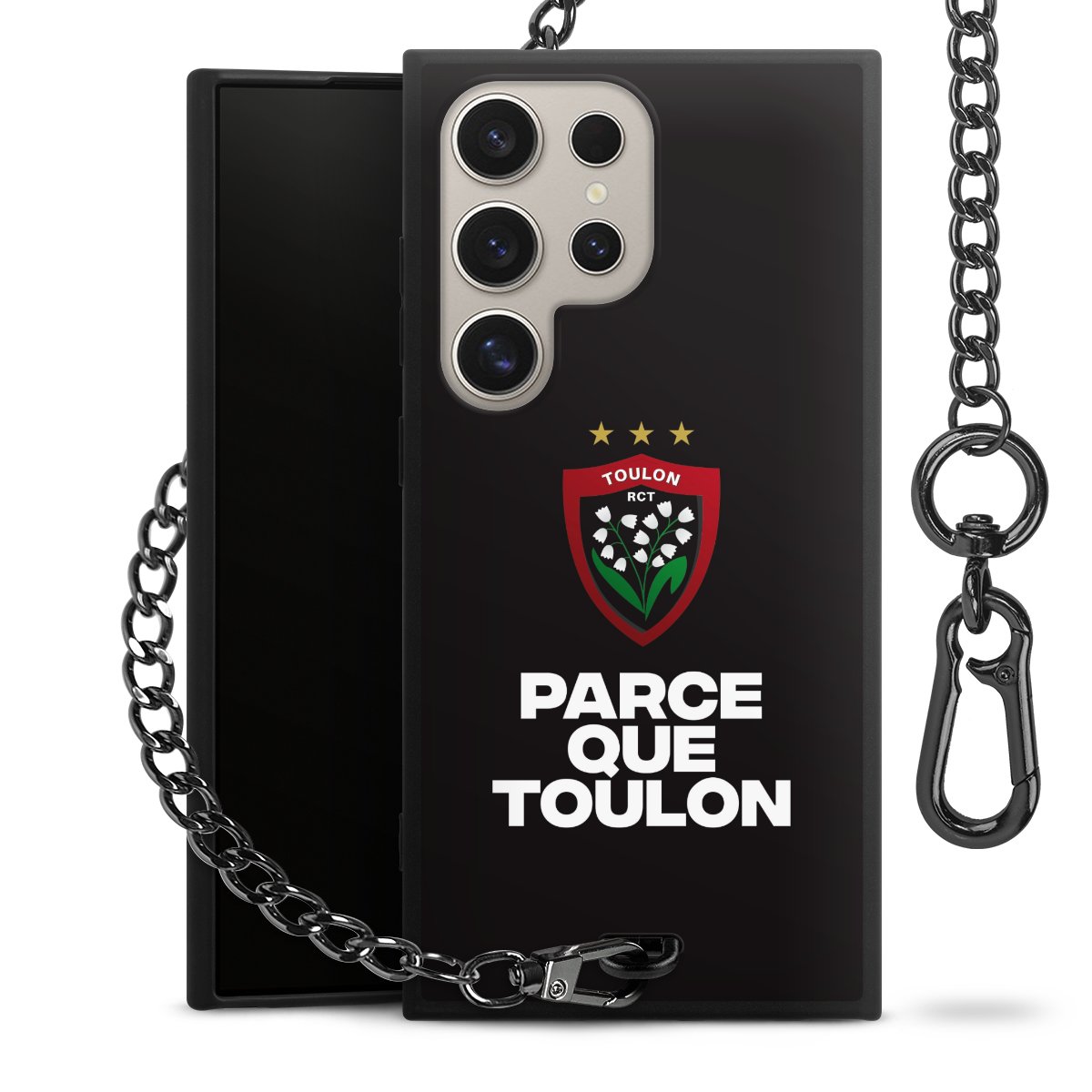 - Mattschwarze Handyhülle mit Metallkette