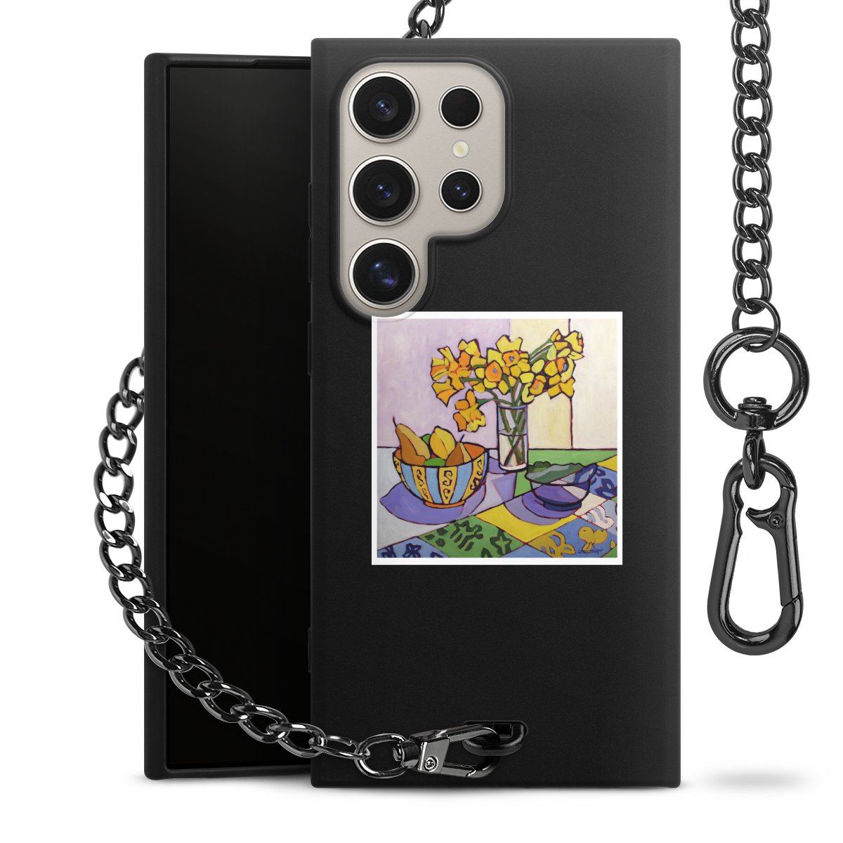 - Mattschwarze Handyhülle mit Metallkette