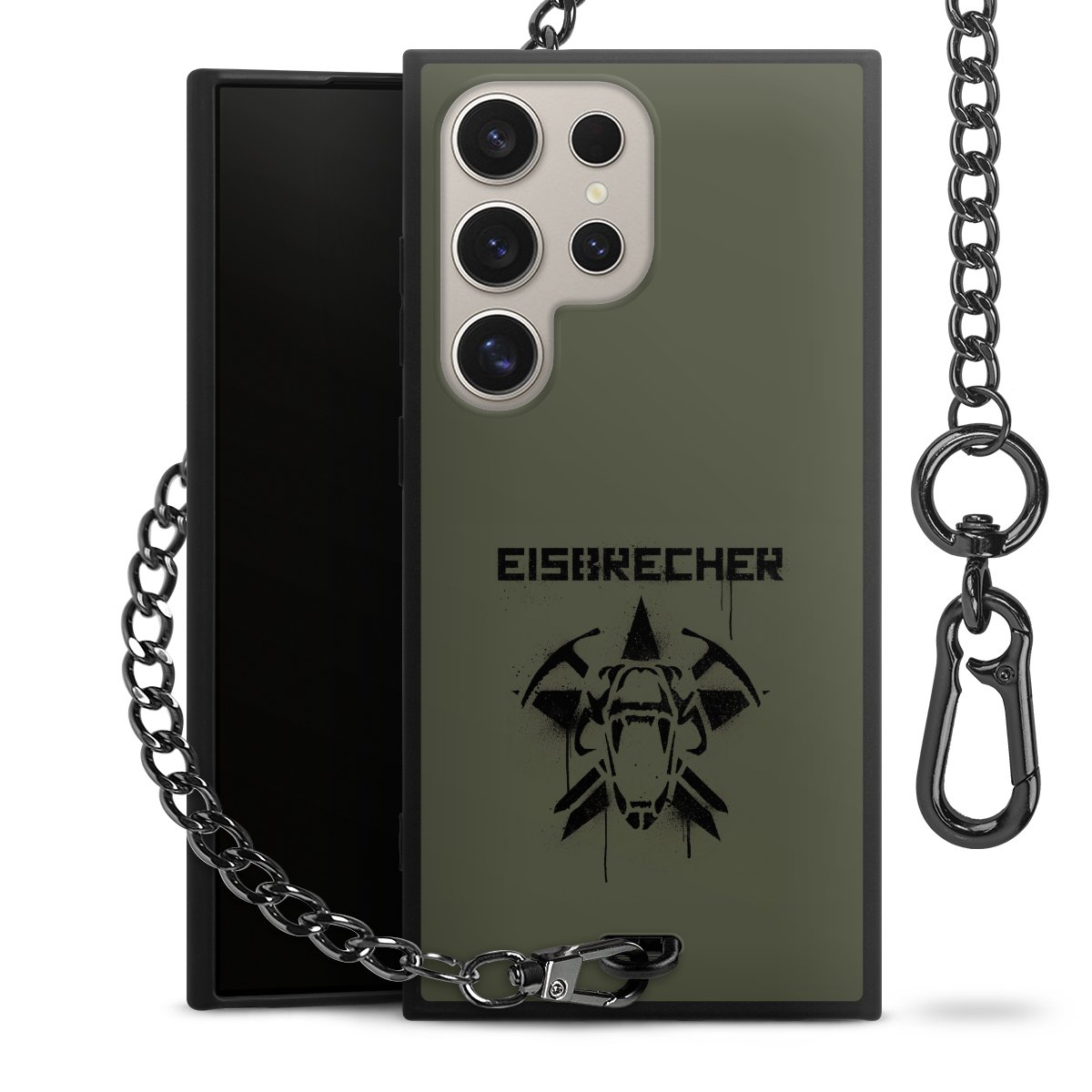 • Mattschwarze Handyhülle mit Metallkette