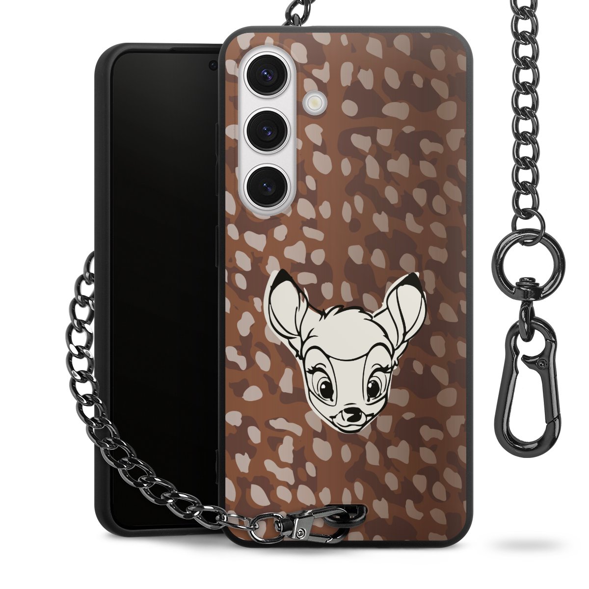 • Mattschwarze Handyhülle mit Metallkette