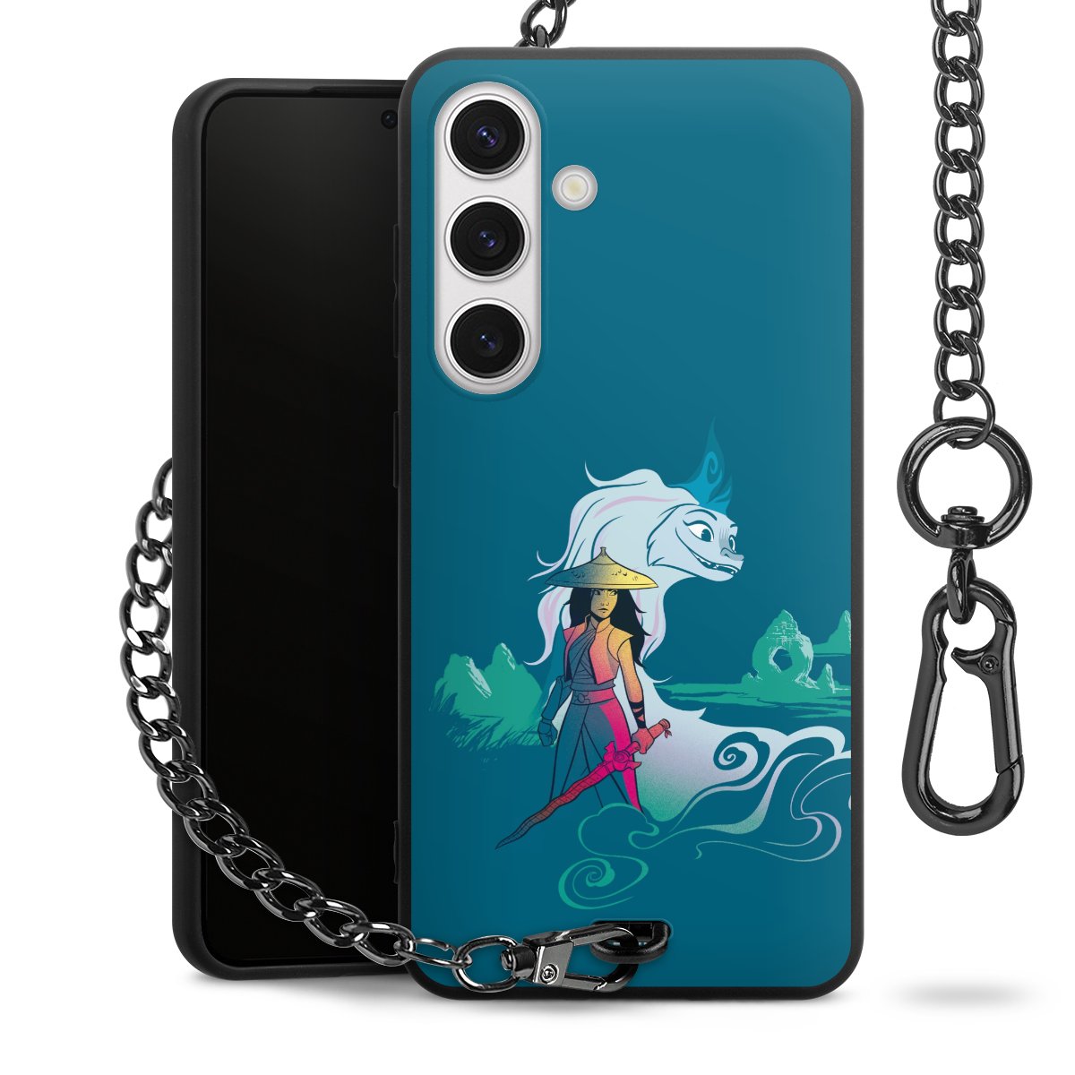 • Mattschwarze Handyhülle mit Metallkette