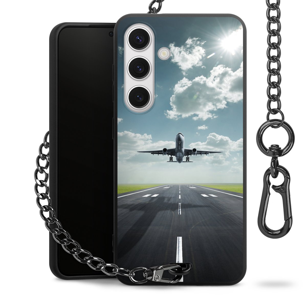 - Mattschwarze Handyhülle mit Metallkette