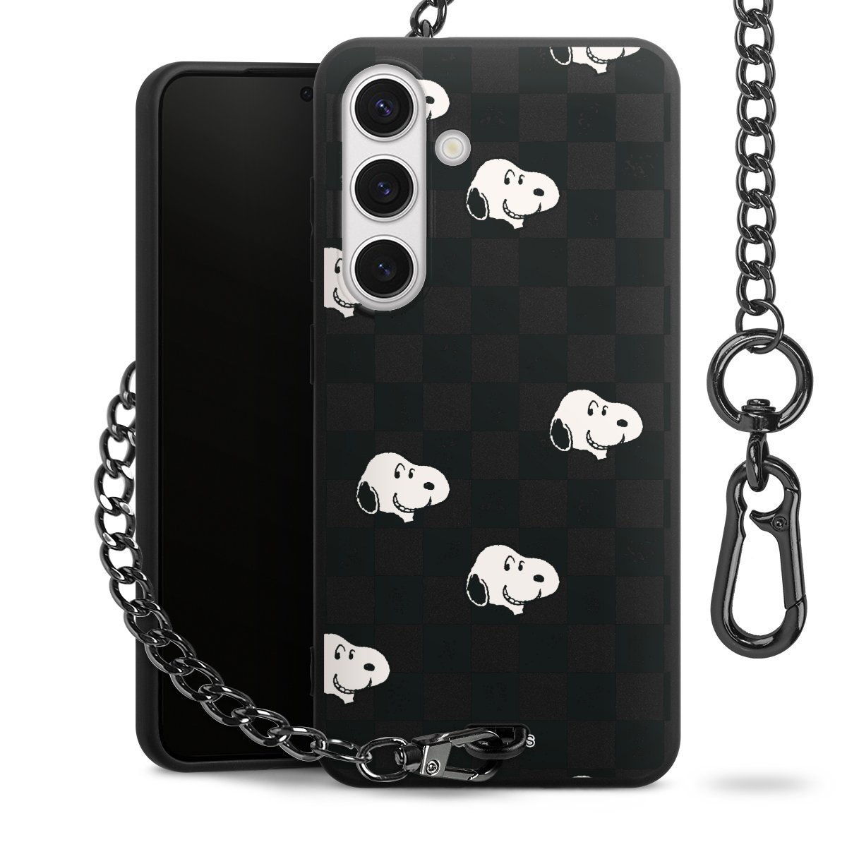 • Mattschwarze Handyhülle mit Metallkette