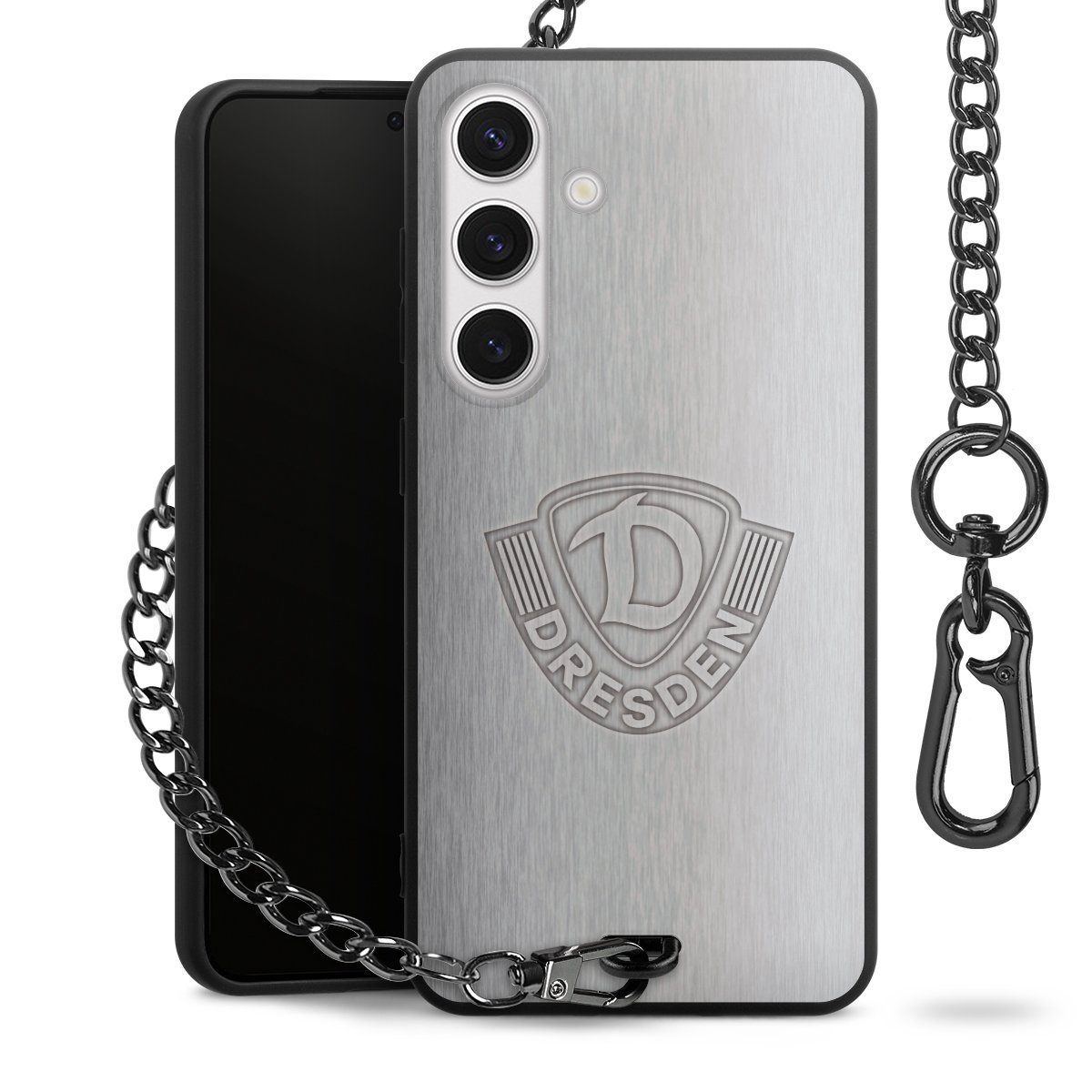 • Mattschwarze Handyhülle mit Metallkette