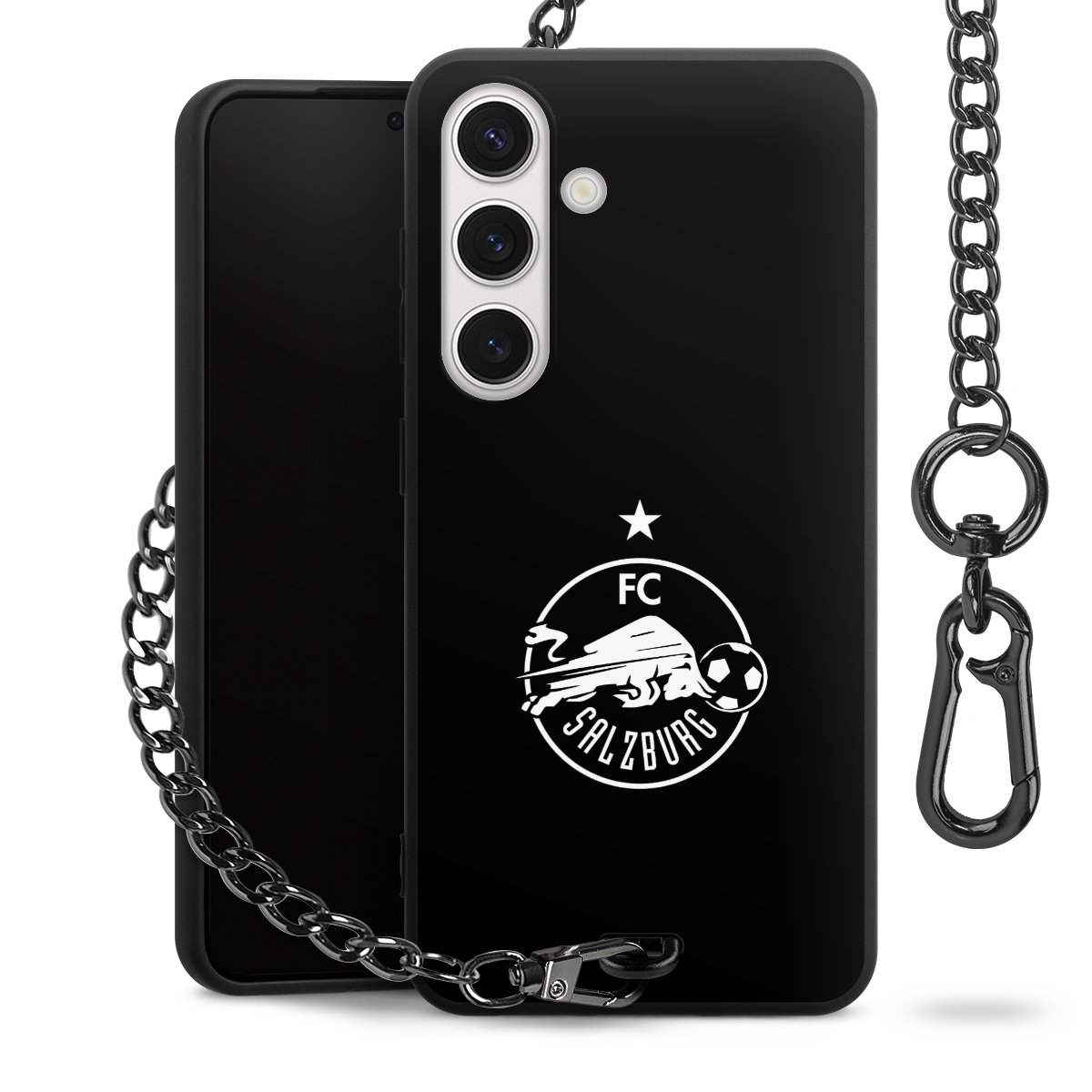 • Mattschwarze Handyhülle mit Metallkette