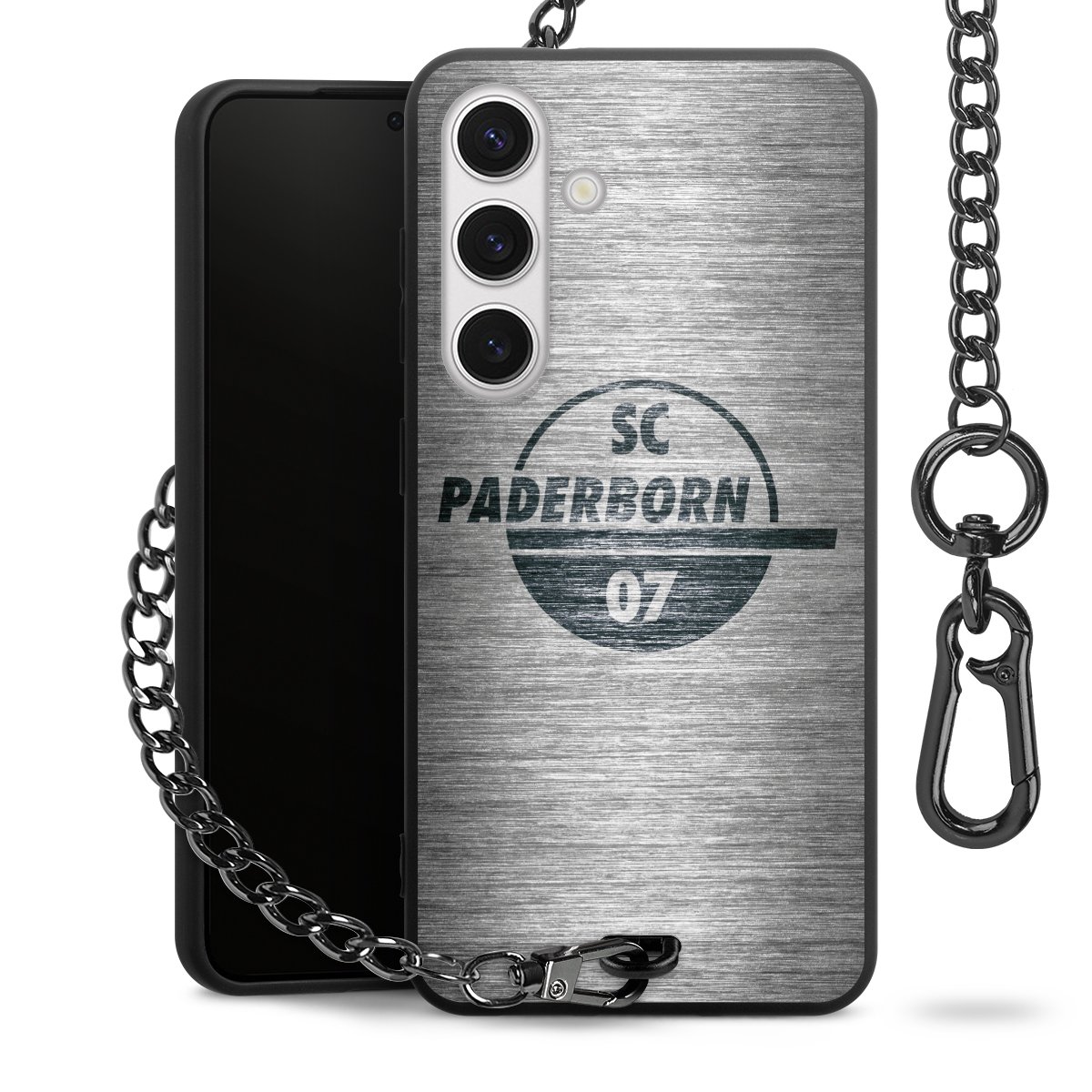 • Mattschwarze Handyhülle mit Metallkette