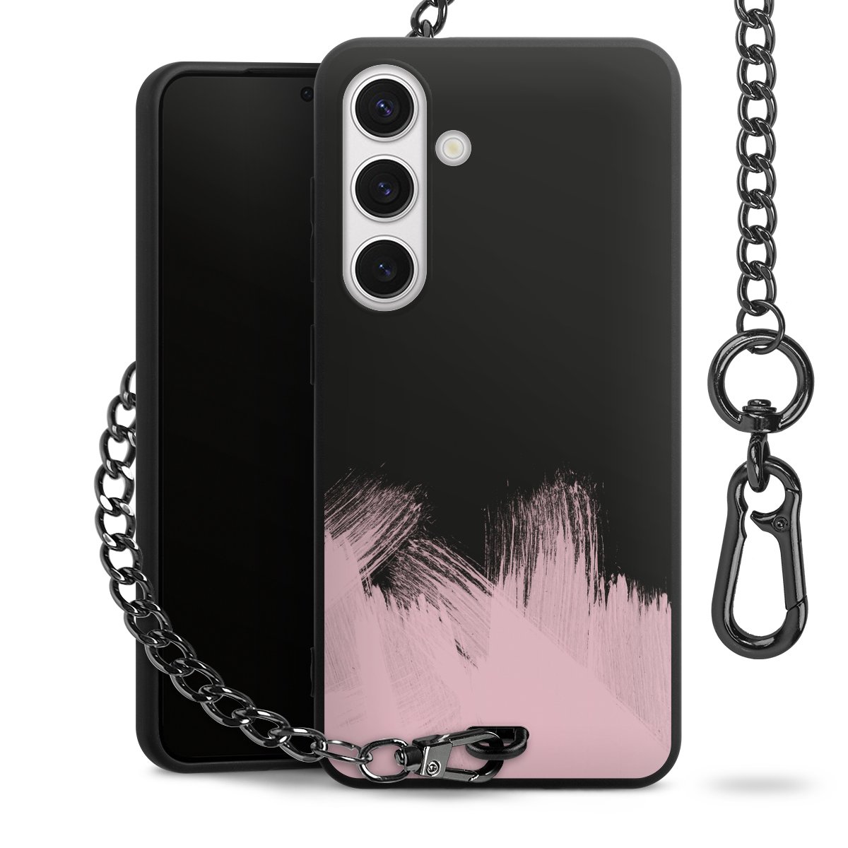• Mattschwarze Handyhülle mit Metallkette
