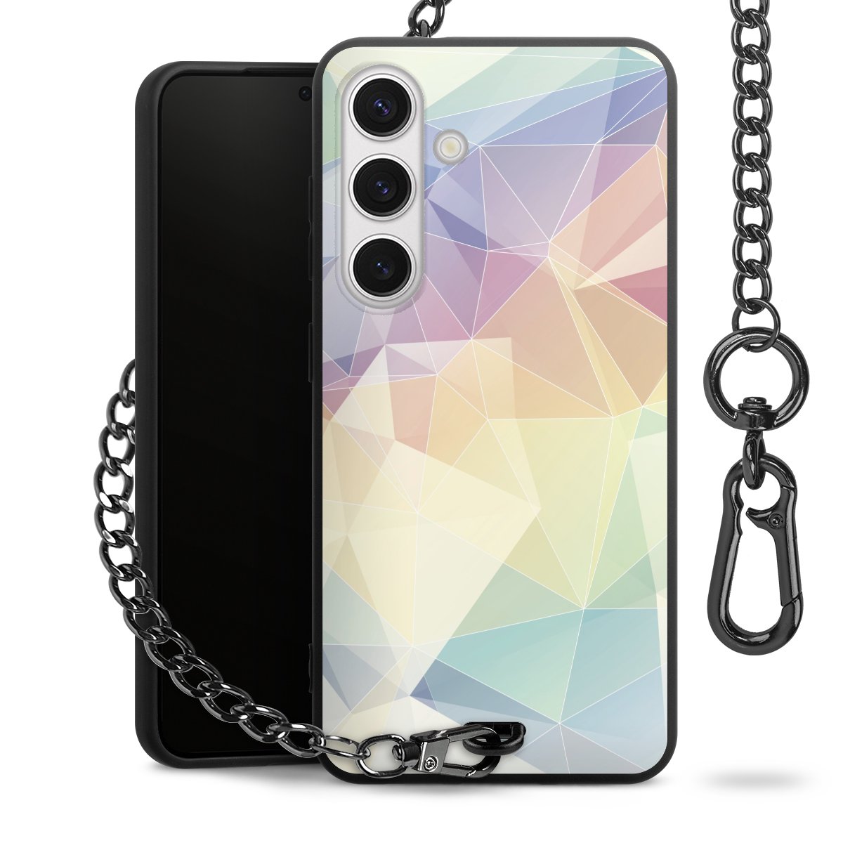 - Mattschwarze Handyhülle mit Metallkette