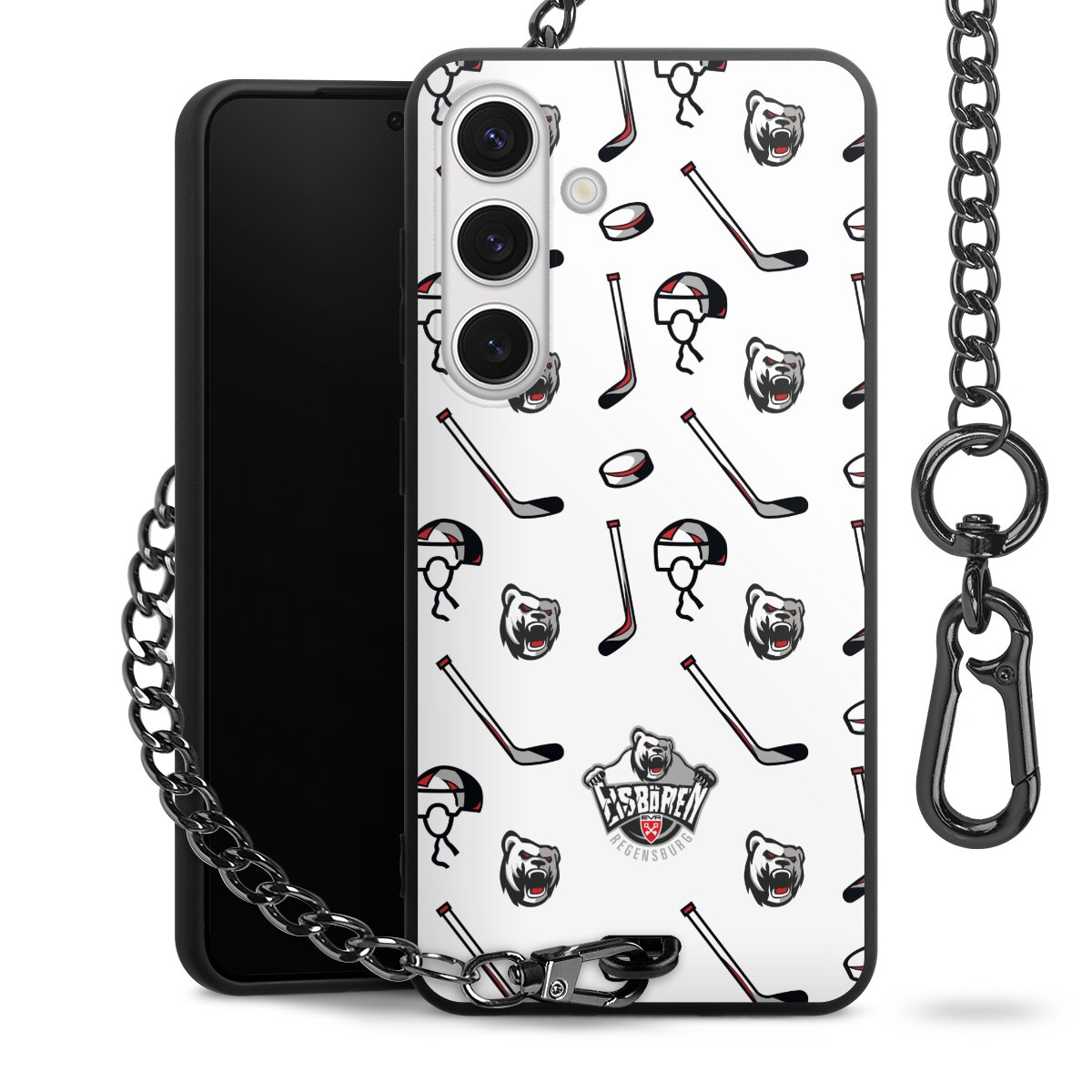 - Mattschwarze Handyhülle mit Metallkette