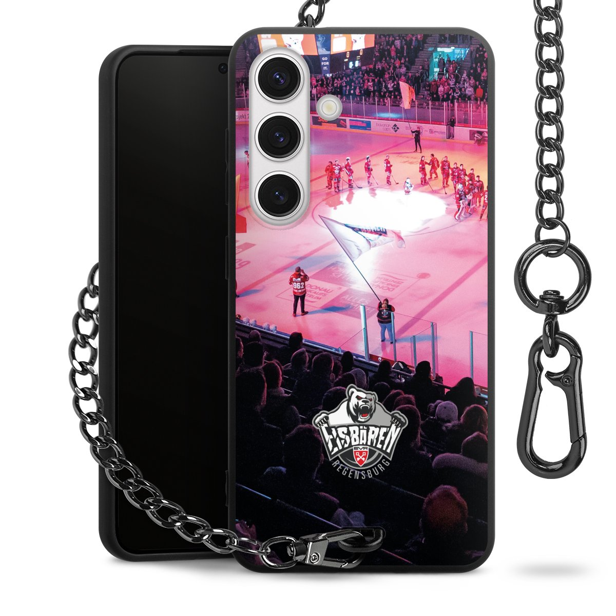 • Mattschwarze Handyhülle mit Metallkette