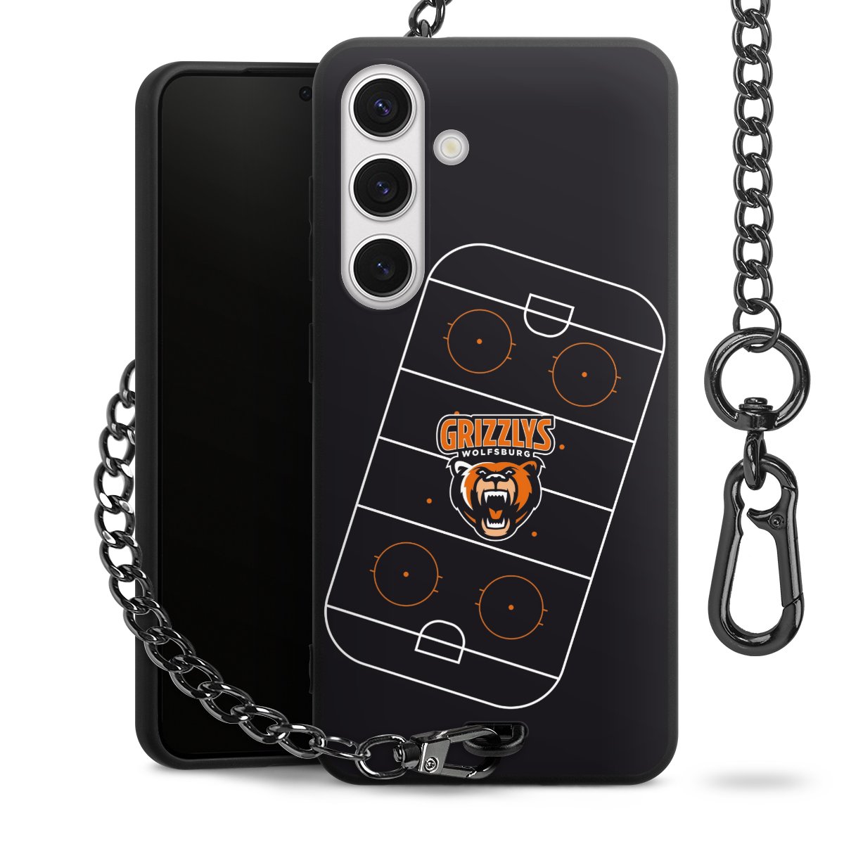 - Mattschwarze Handyhülle mit Metallkette