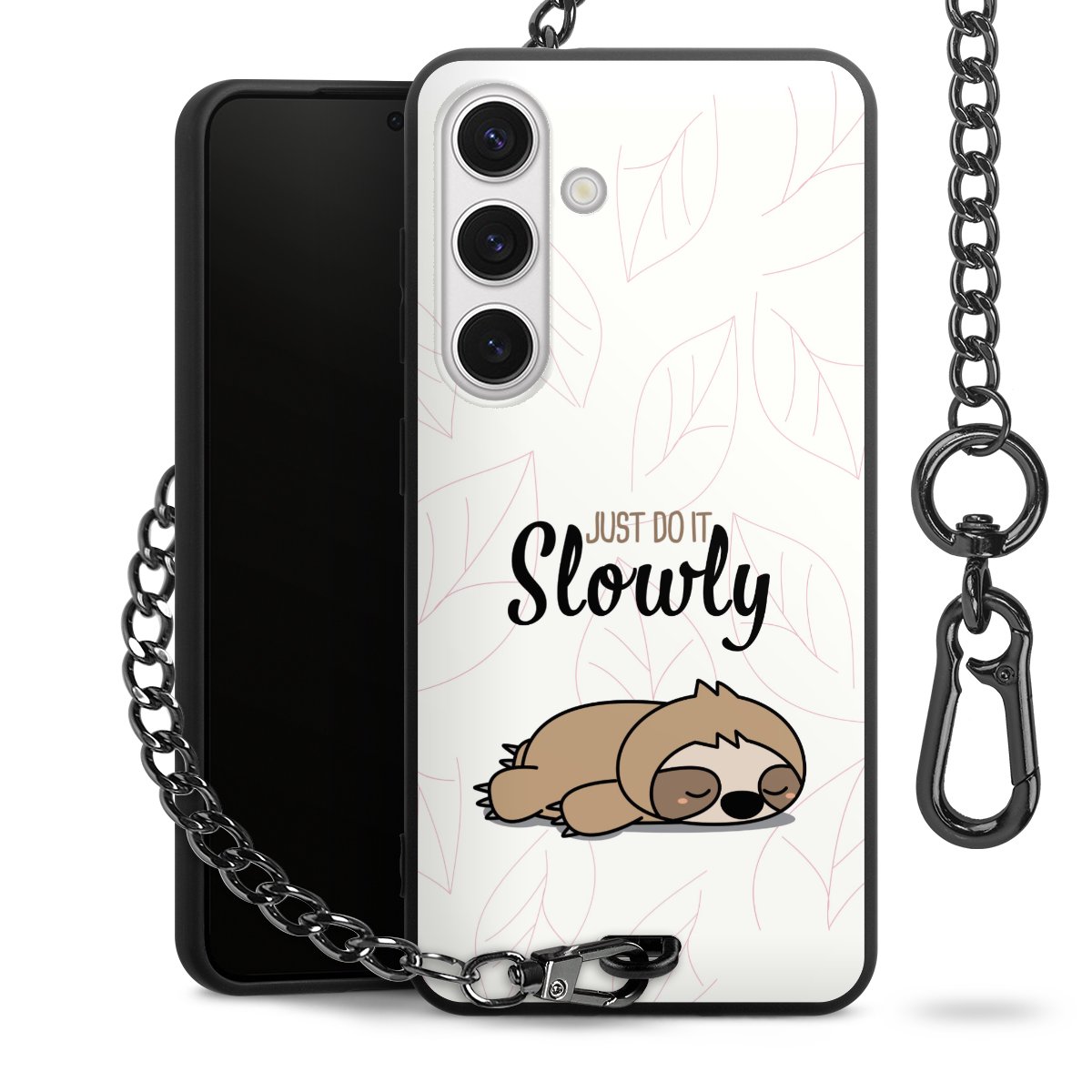 - Mattschwarze Handyhülle mit Metallkette