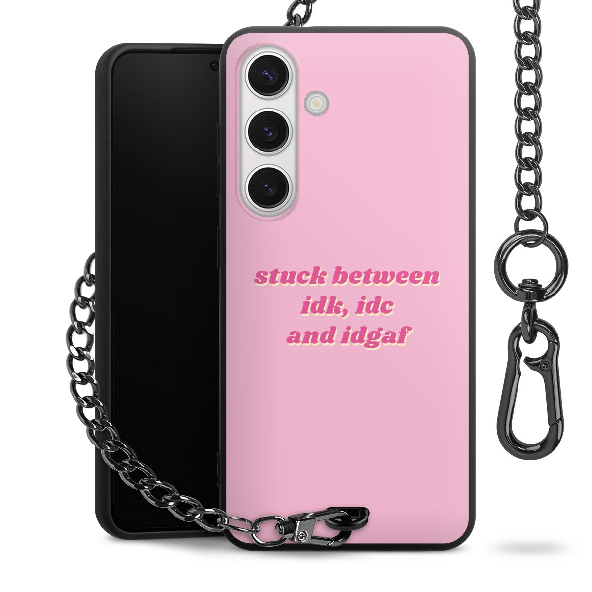 - Mattschwarze Handyhülle mit Metallkette