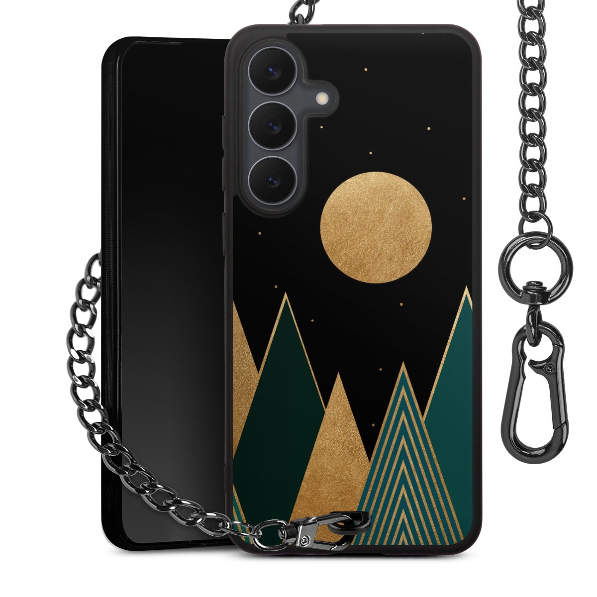 • Mattschwarze Handyhülle mit Metallkette