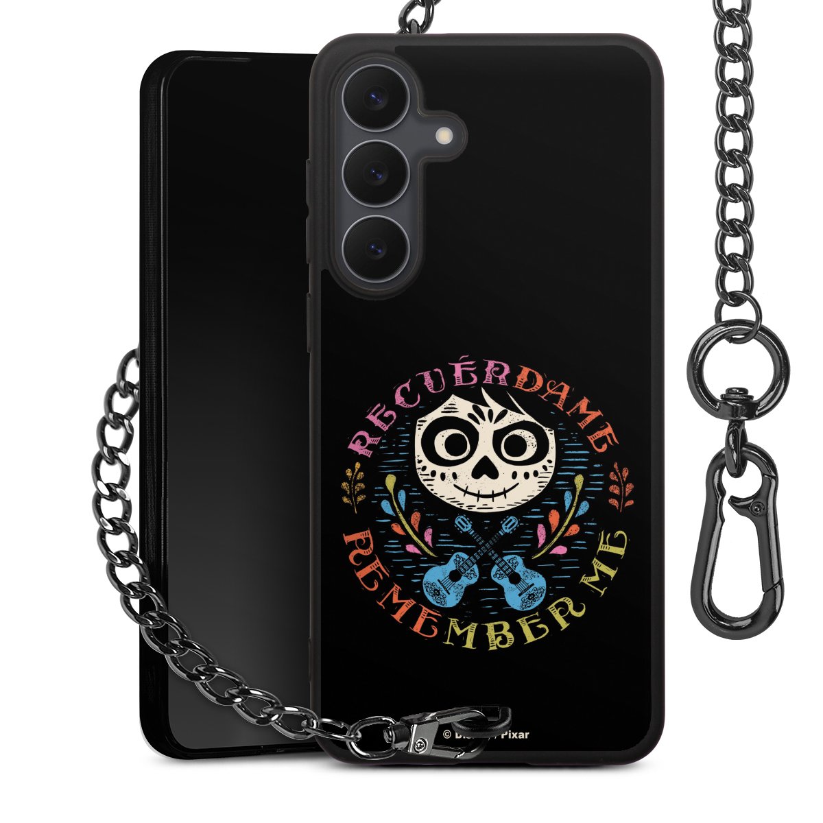 - Mattschwarze Handyhülle mit Metallkette