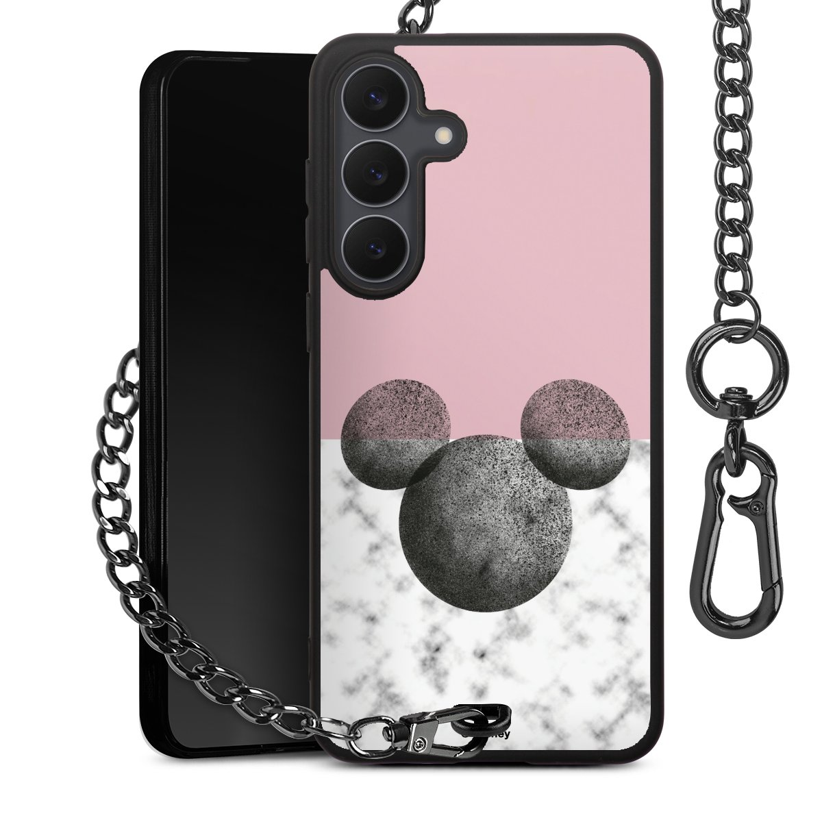• Mattschwarze Handyhülle mit Metallkette