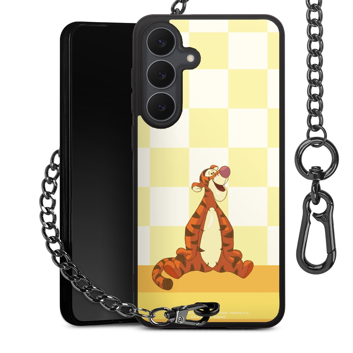 Die mattschwarze Silikon-Handyhülle besteht aus robustem TPU (thermoplastisches Polyurethan). Sie ist flexibel und schützt Dein Smartphone vor Stößen und Kratzern. Die Kette sowie der Karabinerhaken sind aus Metall in Gunmetal-Optik gefertigt. Für dieses Produkt kommen ausschließlich TÜV-geprüfte Materialien zum Einsatz.