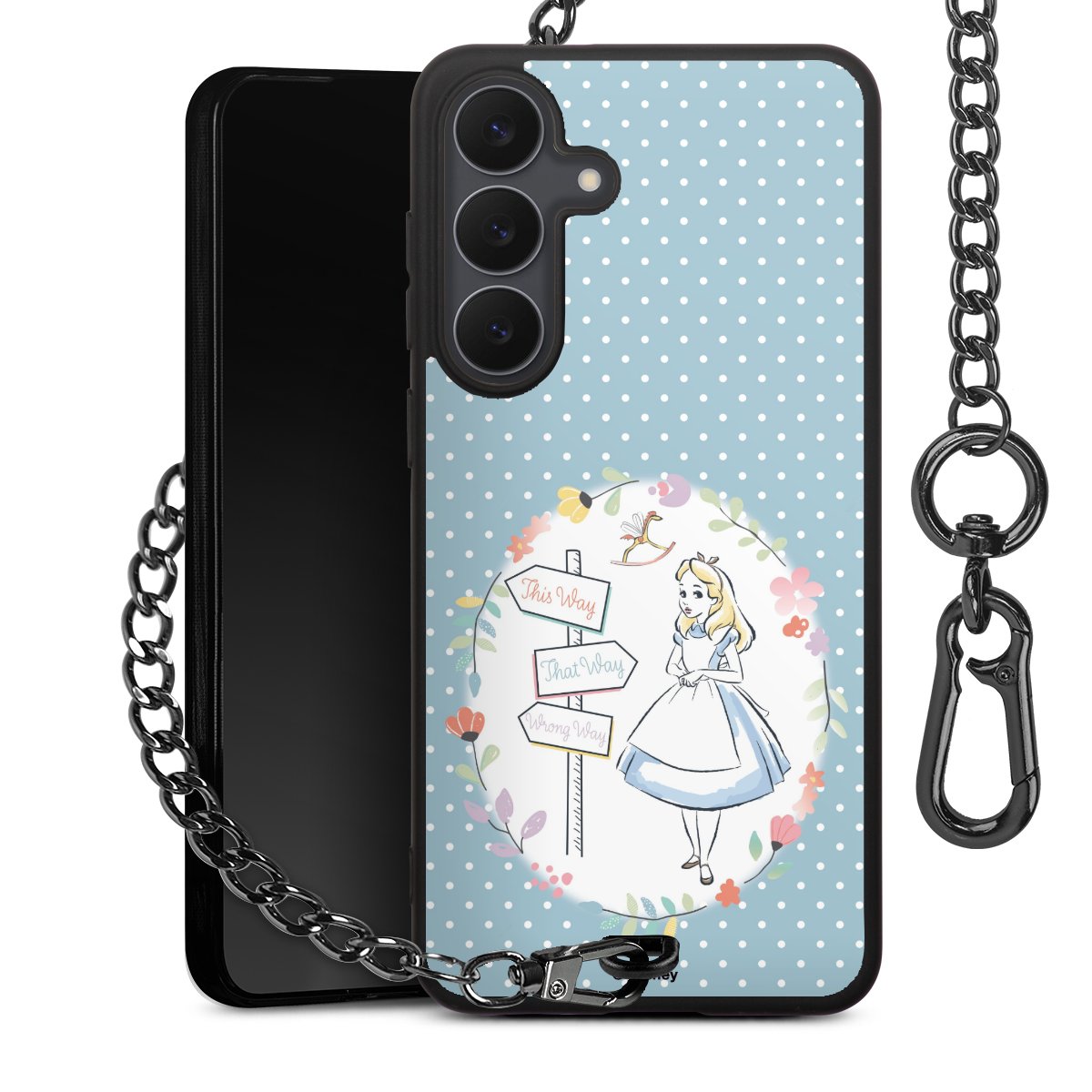 Die Handyhülle verfügt über eine mittig am unteren Rand platzierte Öse, an der die Metallkette stabil befestigt ist. Bestelle die Hülle einfach für Dein Smartphone-Modell, dann passt sie wie angegossen und Du brauchst sie bloß einmal anzudrücken. Handy in die Tasche, Karabiner an den Hosenbund – schon kann die Party starten.