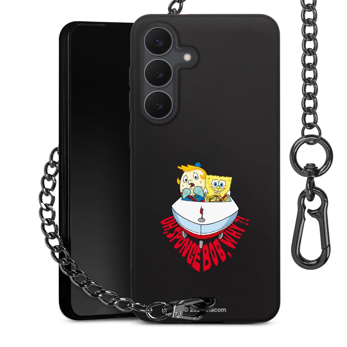 Die Handyhülle verfügt über eine mittig am unteren Rand platzierte Öse, an der die Metallkette stabil befestigt ist. Bestelle die Hülle einfach für Dein Smartphone-Modell, dann passt sie wie angegossen und Du brauchst sie bloß einmal anzudrücken. Handy in die Tasche, Karabiner an den Hosenbund – schon kann die Party starten.