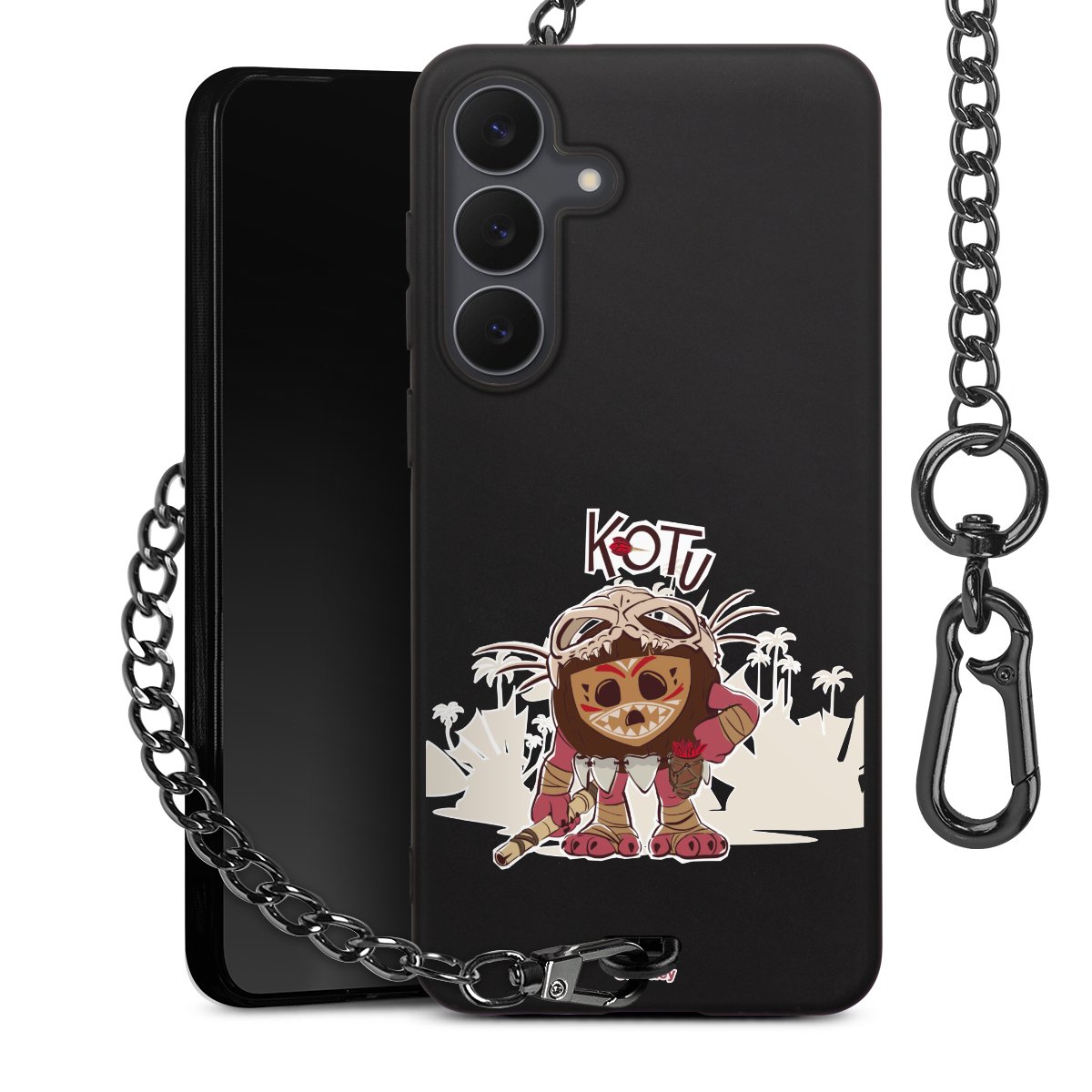 • Mattschwarze Handyhülle mit Metallkette