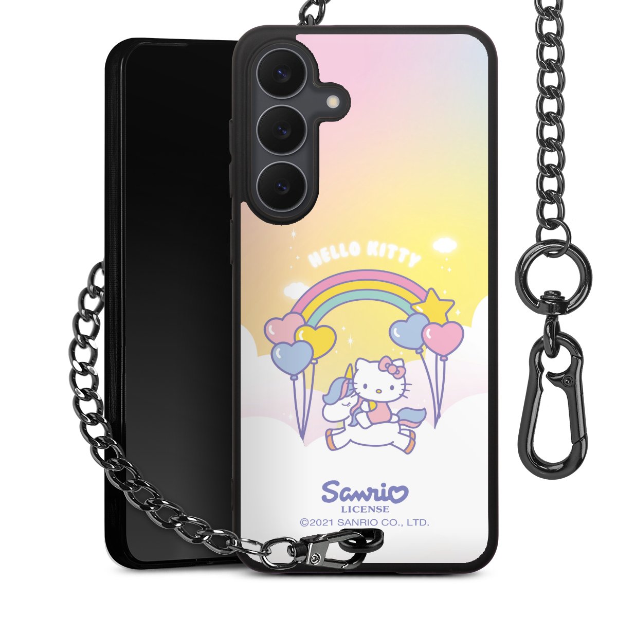 Die mattschwarze Silikon-Handyhülle besteht aus robustem TPU (thermoplastisches Polyurethan). Sie ist flexibel und schützt Dein Smartphone vor Stößen und Kratzern. Die Kette sowie der Karabinerhaken sind aus Metall in Gunmetal-Optik gefertigt. Für dieses Produkt kommen ausschließlich TÜV-geprüfte Materialien zum Einsatz.