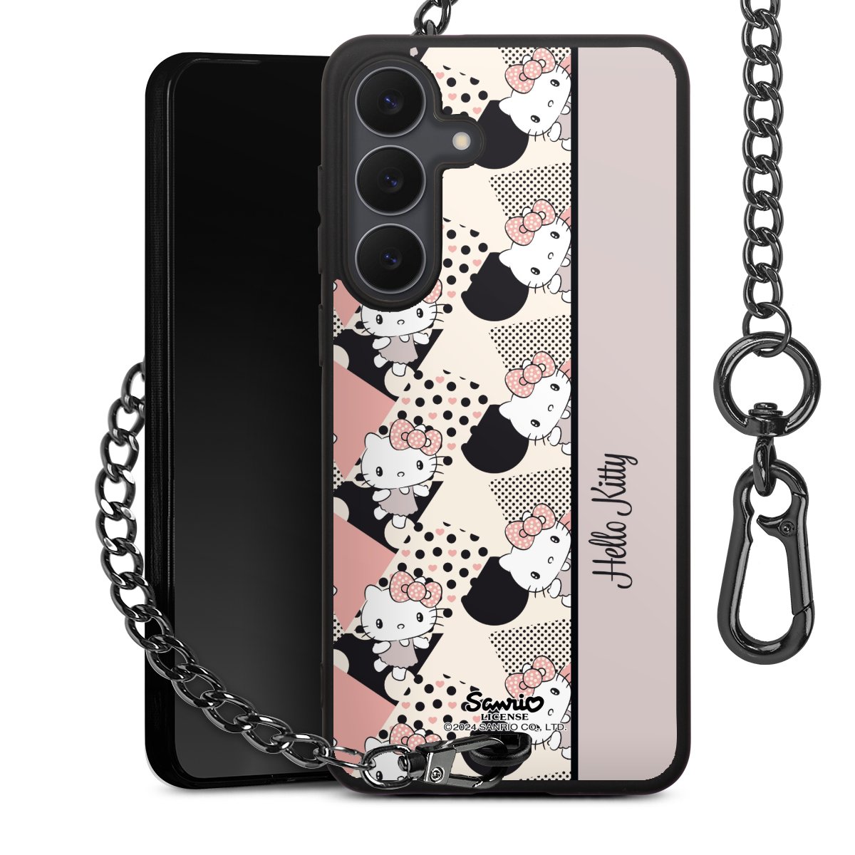 - Mattschwarze Handyhülle mit Metallkette