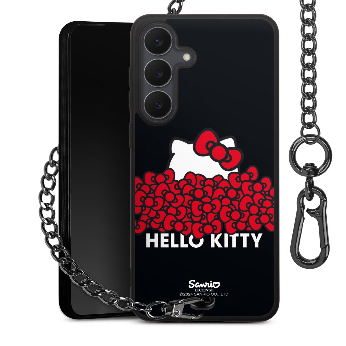 Die mattschwarze Silikon-Handyhülle besteht aus robustem TPU (thermoplastisches Polyurethan). Sie ist flexibel und schützt Dein Smartphone vor Stößen und Kratzern. Die Kette sowie der Karabinerhaken sind aus Metall in Gunmetal-Optik gefertigt. Für dieses Produkt kommen ausschließlich TÜV-geprüfte Materialien zum Einsatz.