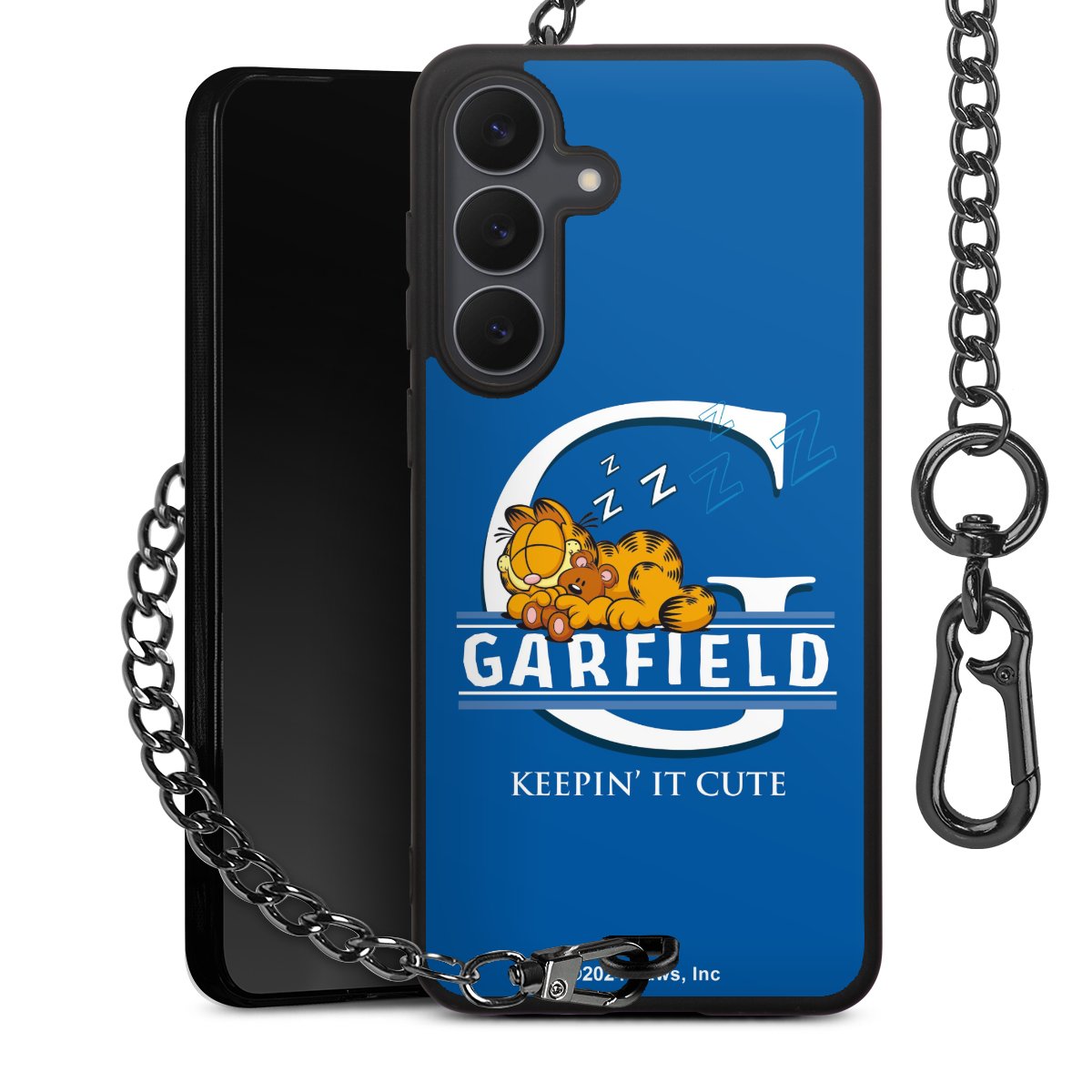 Die Handyhülle verfügt über eine mittig am unteren Rand platzierte Öse, an der die Metallkette stabil befestigt ist. Bestelle die Hülle einfach für Dein Smartphone-Modell, dann passt sie wie angegossen und Du brauchst sie bloß einmal anzudrücken. Handy in die Tasche, Karabiner an den Hosenbund – schon kann die Party starten.