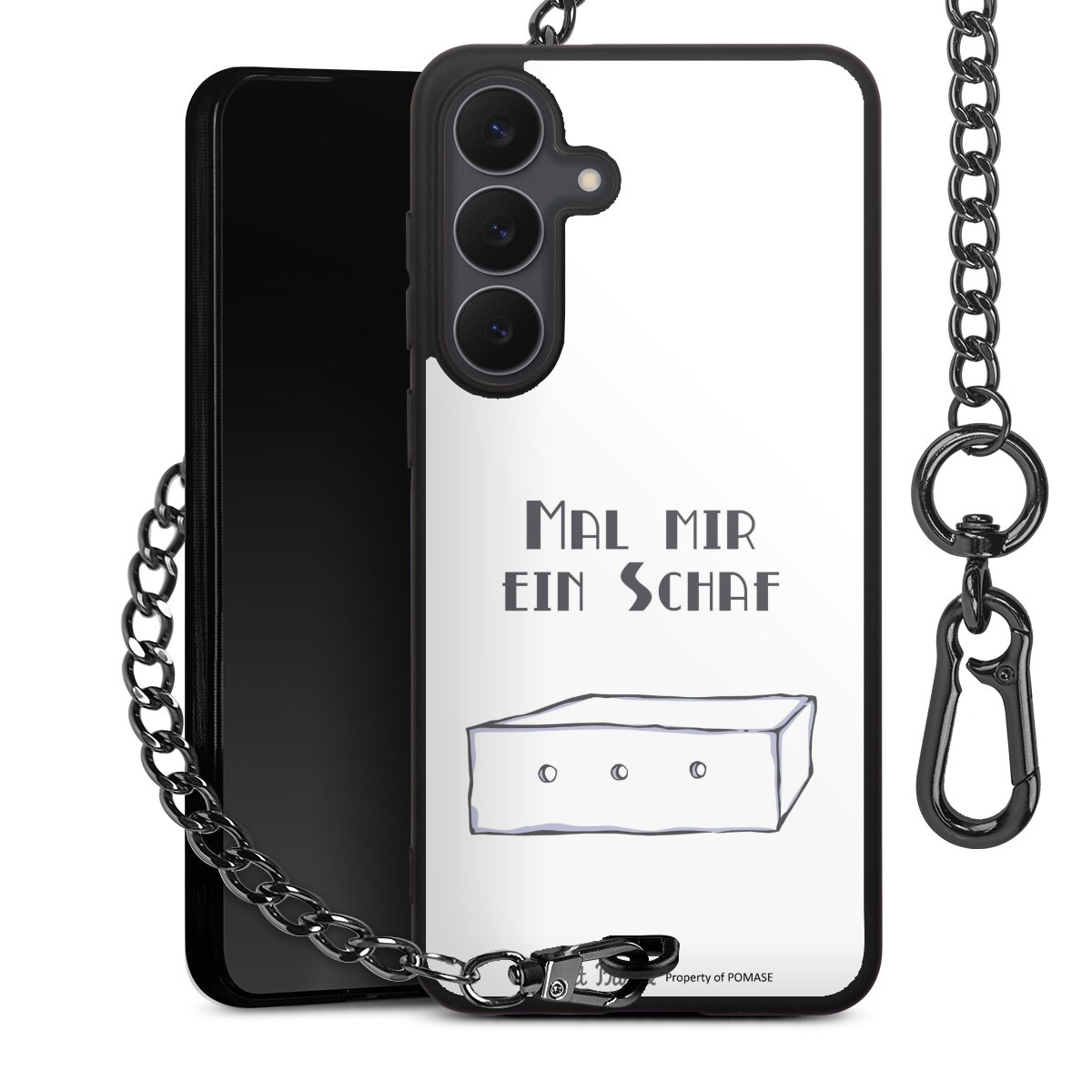 Die mattschwarze Silikon-Handyhülle besteht aus robustem TPU (thermoplastisches Polyurethan). Sie ist flexibel und schützt Dein Smartphone vor Stößen und Kratzern. Die Kette sowie der Karabinerhaken sind aus Metall in Gunmetal-Optik gefertigt. Für dieses Produkt kommen ausschließlich TÜV-geprüfte Materialien zum Einsatz.