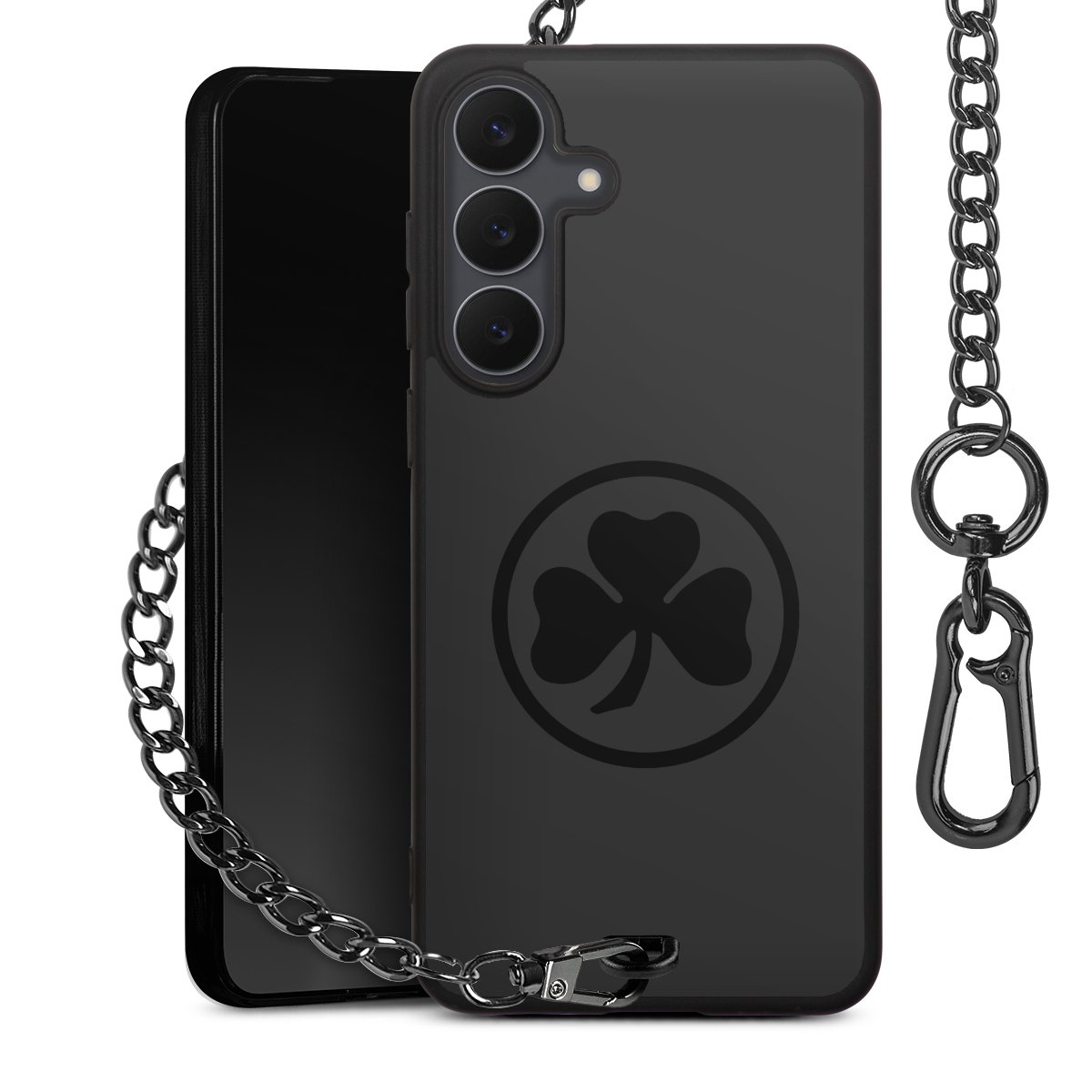 • Mattschwarze Handyhülle mit Metallkette