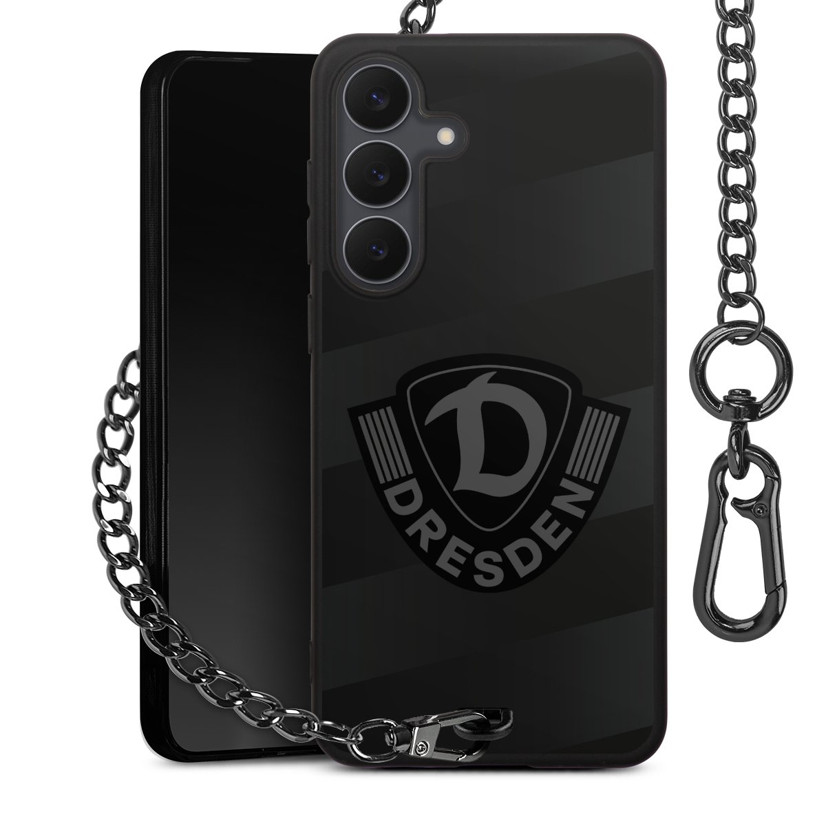 • Mattschwarze Handyhülle mit Metallkette