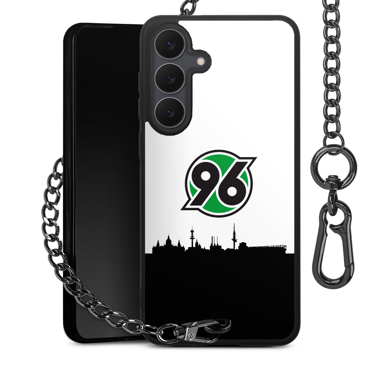 Die mattschwarze Silikon-Handyhülle besteht aus robustem TPU (thermoplastisches Polyurethan). Sie ist flexibel und schützt Dein Smartphone vor Stößen und Kratzern. Die Kette sowie der Karabinerhaken sind aus Metall in Gunmetal-Optik gefertigt. Für dieses Produkt kommen ausschließlich TÜV-geprüfte Materialien zum Einsatz.