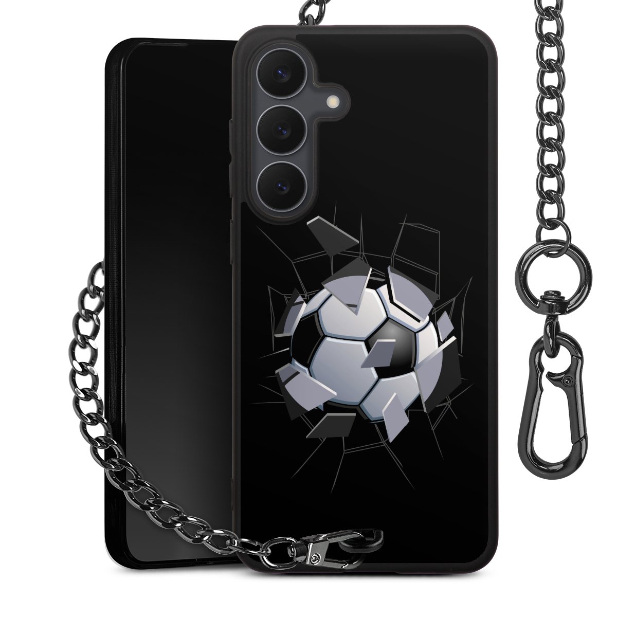 • Mattschwarze Handyhülle mit Metallkette