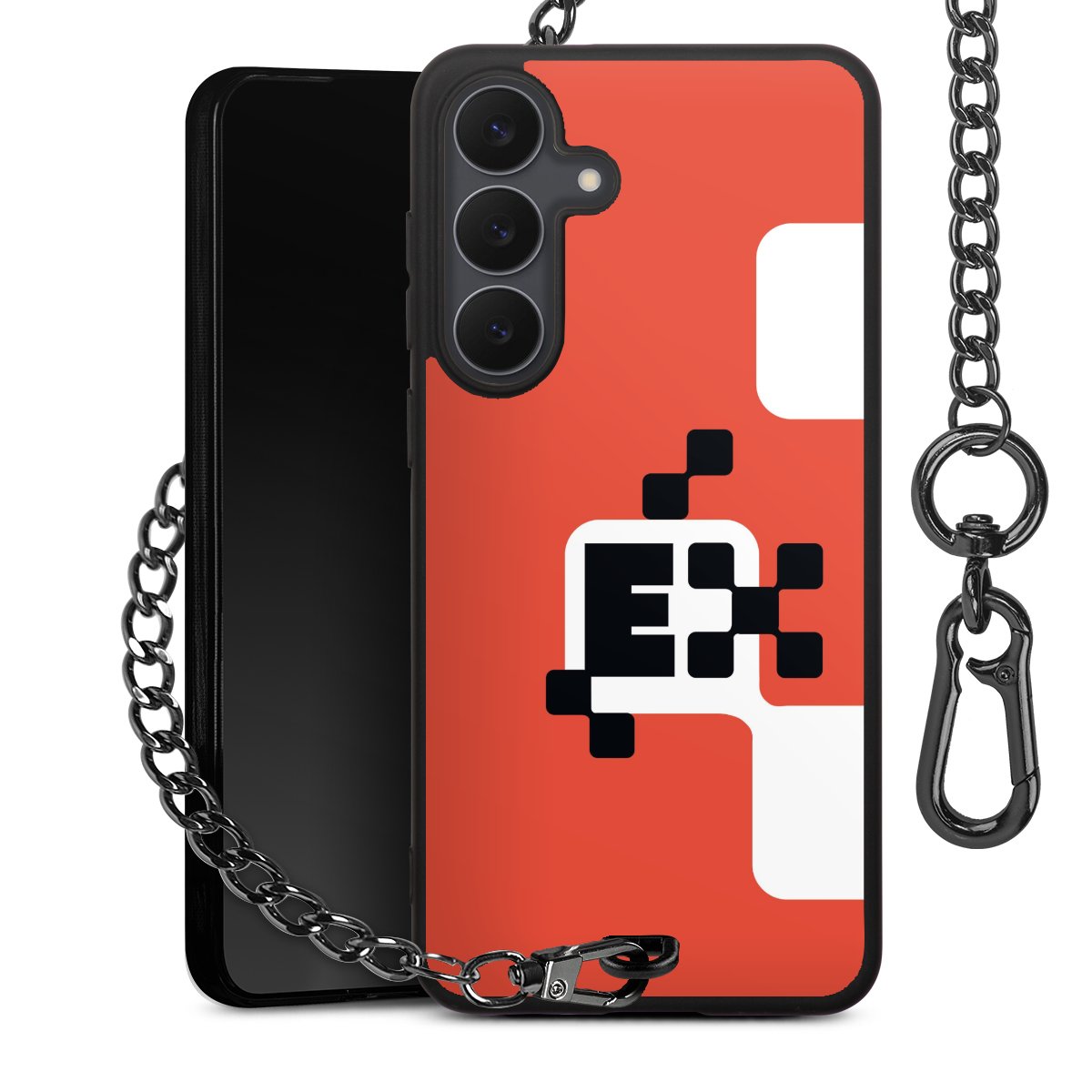 • Mattschwarze Handyhülle mit Metallkette