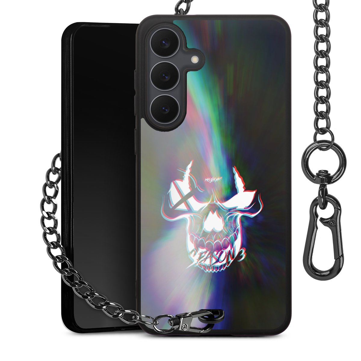 • Mattschwarze Handyhülle mit Metallkette