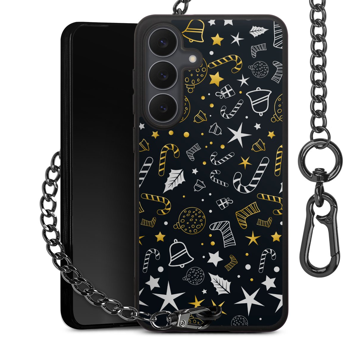 - Mattschwarze Handyhülle mit Metallkette