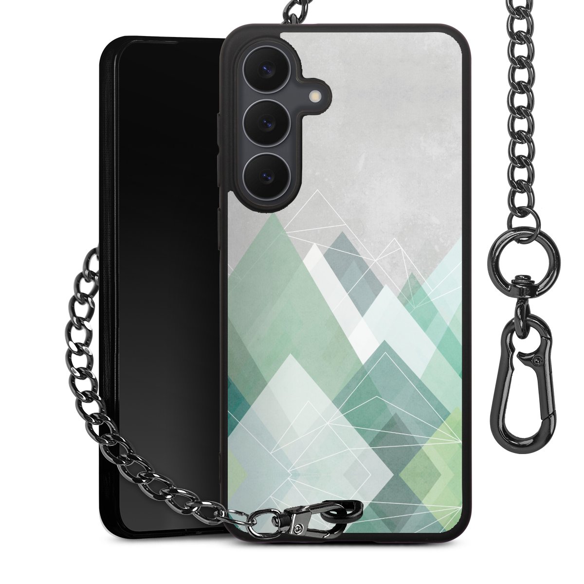 • Mattschwarze Handyhülle mit Metallkette