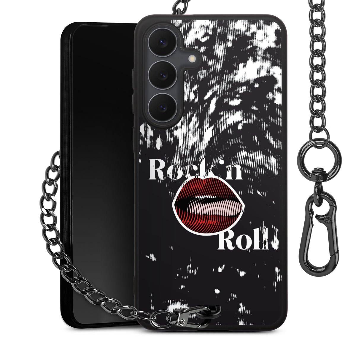 - Mattschwarze Handyhülle mit Metallkette