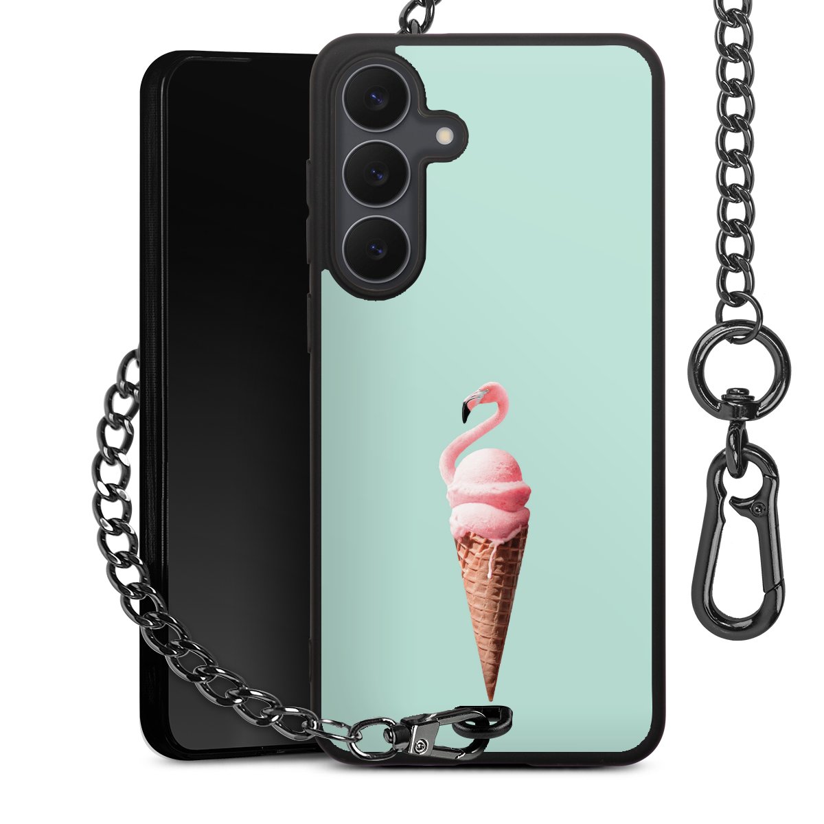 • Mattschwarze Handyhülle mit Metallkette