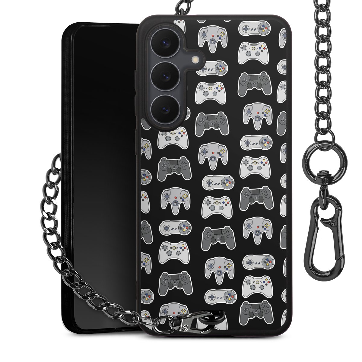 • Mattschwarze Handyhülle mit Metallkette