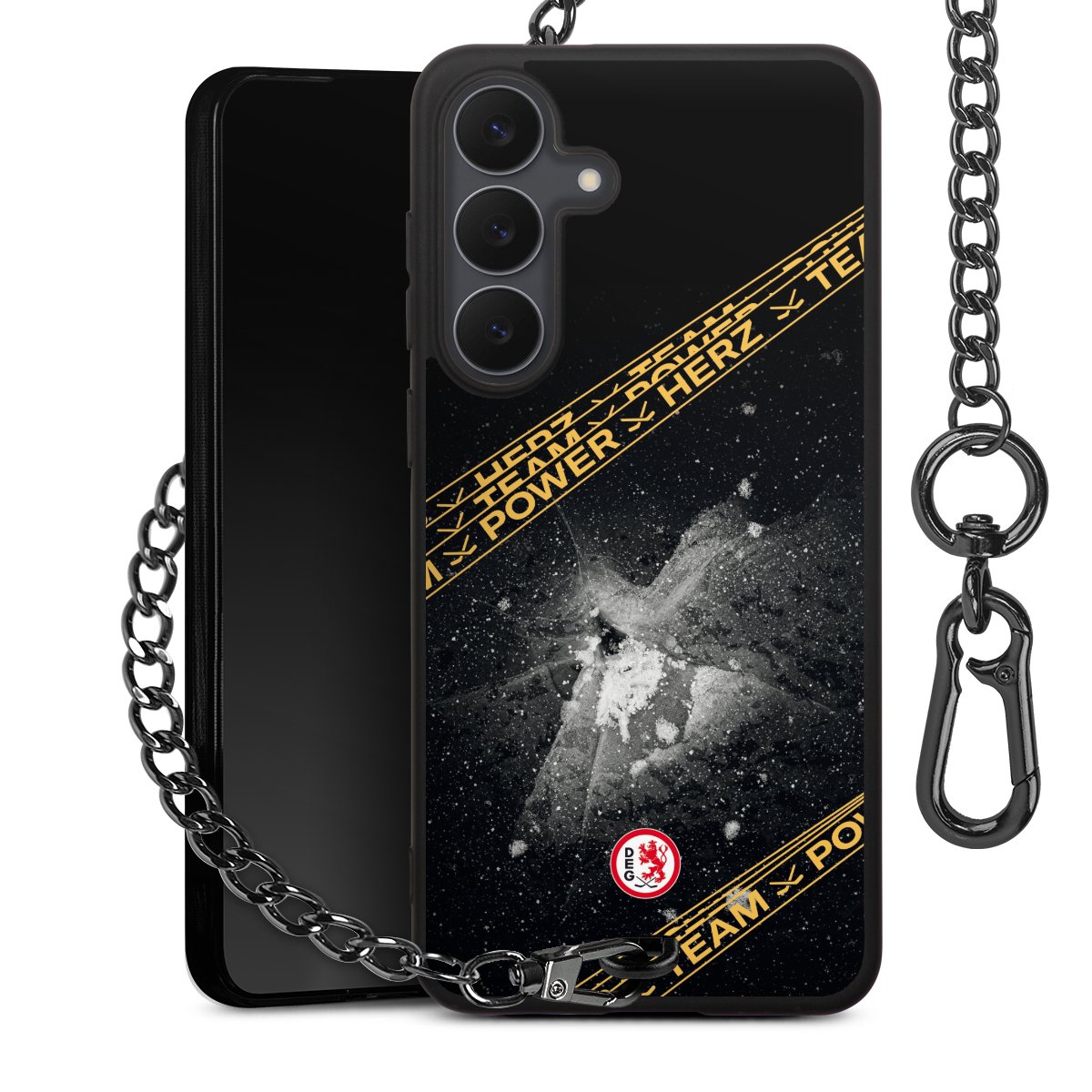 - Mattschwarze Handyhülle mit Metallkette